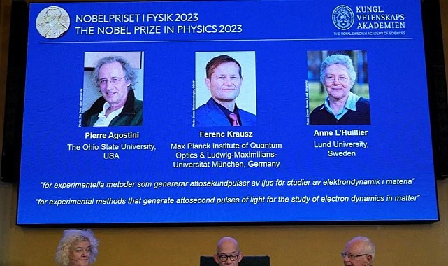 2023 Nobel Fizik Ödülü'nü maddedeki elektron dinamikleriyle ilgili çalışmalarından dolayı bilim insanları Pierre Agostini, Ferenc Krausz ve Anne L'Huillier kazandı.
