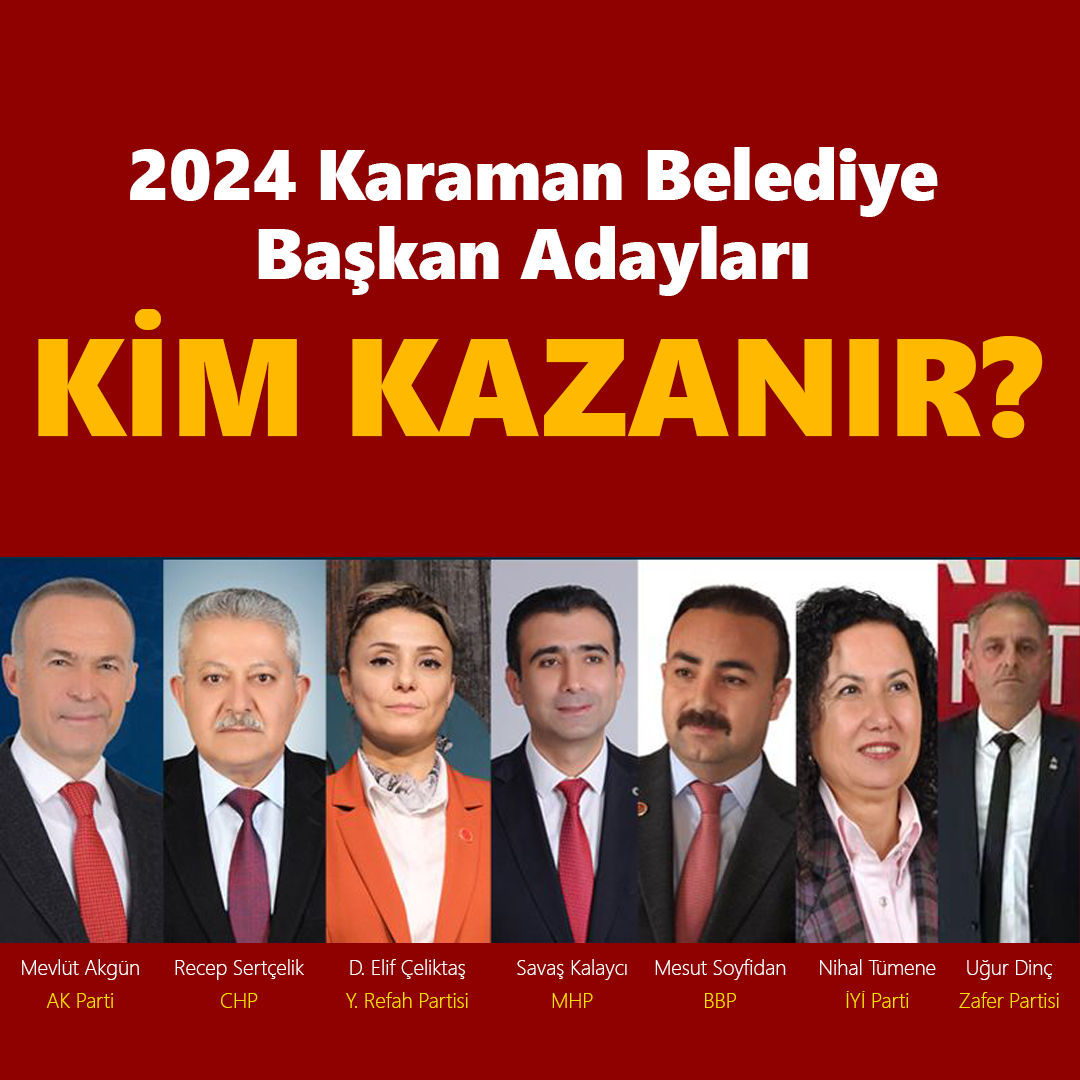 Karaman’da 31 Mart 2024 Pazar günü yapılacak Mahalli İdareler Genel Seçimlerine katılacak siyasi partilerin il ve ilçe seçim kurullarına sunduğu geçici aday listelerindeki incelemeler devam ediyor.İtiraz sürecinin sona ermesinin ardından, tüm aday listeleri seçim kurullarınca ilan edilecek. Açıklanan listelere göre Karaman’da siyasi partilerin belediye başkan adayları şu şekilde: