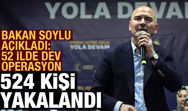Bakan Soylu, 52 ilde yürütülen Ankara merkezli Kökünü Kurutma Operasyonunda uyuşturucu imalatçı ve tacirlerinin de aralarında bulunduğu 524 şüphelinin gözaltına alındığını açıkladı.
