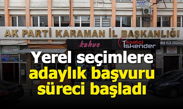 AK Parti Karaman İl Başkanlığı'nın 2024 Mahalli Seçimler için adaylık başvuru süreci duyurusunda şu ifadelere yer verildi:"31 Mart 2024’te yapılacak yerel seçimlerde adaylıklar için başvuru süreci başladı. AK Parti 2024 Mahalli Yerel Seçimleri için Belediye Başkan adayları, Belediye Meclis Üyesi adaylığı ve İl Genel Meclis üyeliği adaylığı başvuruları için sürecimiz başlamıştır. Son başvuru tarihi 17.11.2023 (CUMA) Saat 17:00 da son bulacaktır.Aday olmak isteyen tüm hemşehrilerimizi Parti binamıza bekliyoruz."