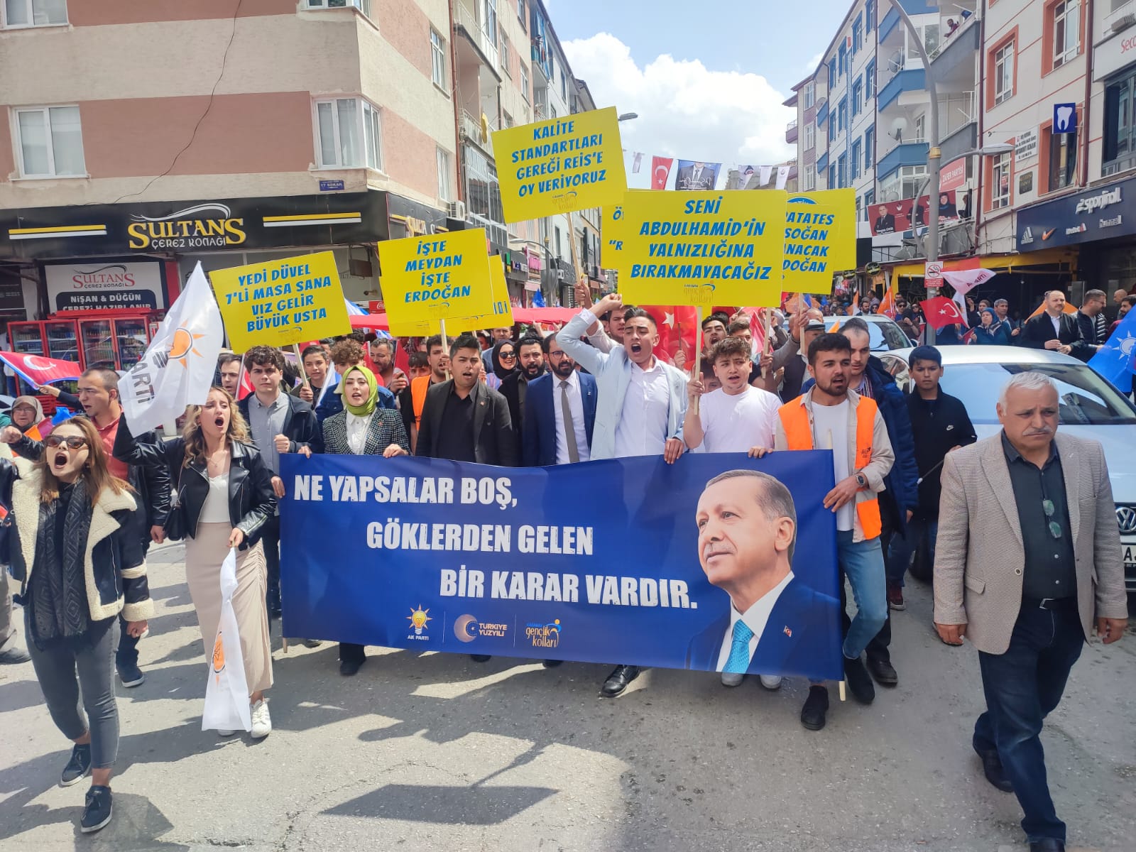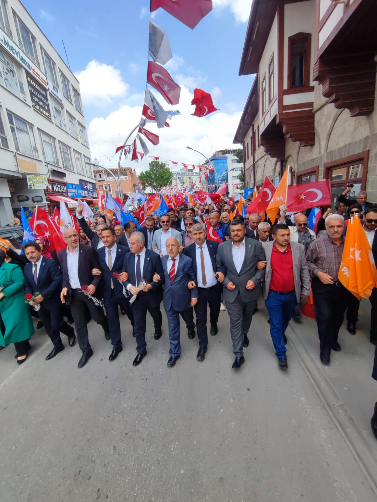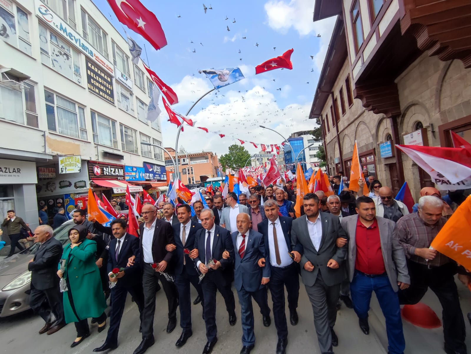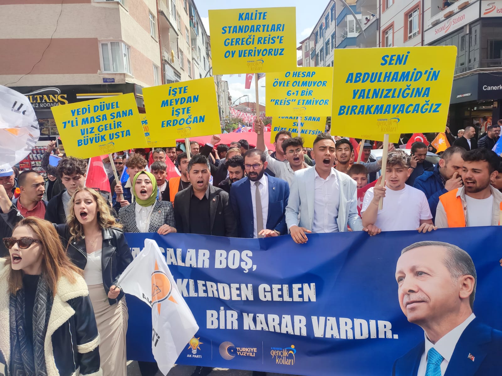 Yarın yapılacak olan Cumhurbaşkanlığı ve milletvekili genel seçimleri öncesinde saha programlarını aksatmadan sürdüren AK Parti Karaman teşkilatı, seçimin 1 gün öncesinde yürüyüş düzenledi. AK Parti İl binası önünde toplanan kalabalık, ellerindeki bayraklarla 1. İstasyon Caddesindeki seçim bürosuna kadar yürüdü. Karaman halkı yarın gerçekleşecek olan seçim öncesi AK Parti’ye destek vermek adına yürüyüşe yoğun katılım sağladı.