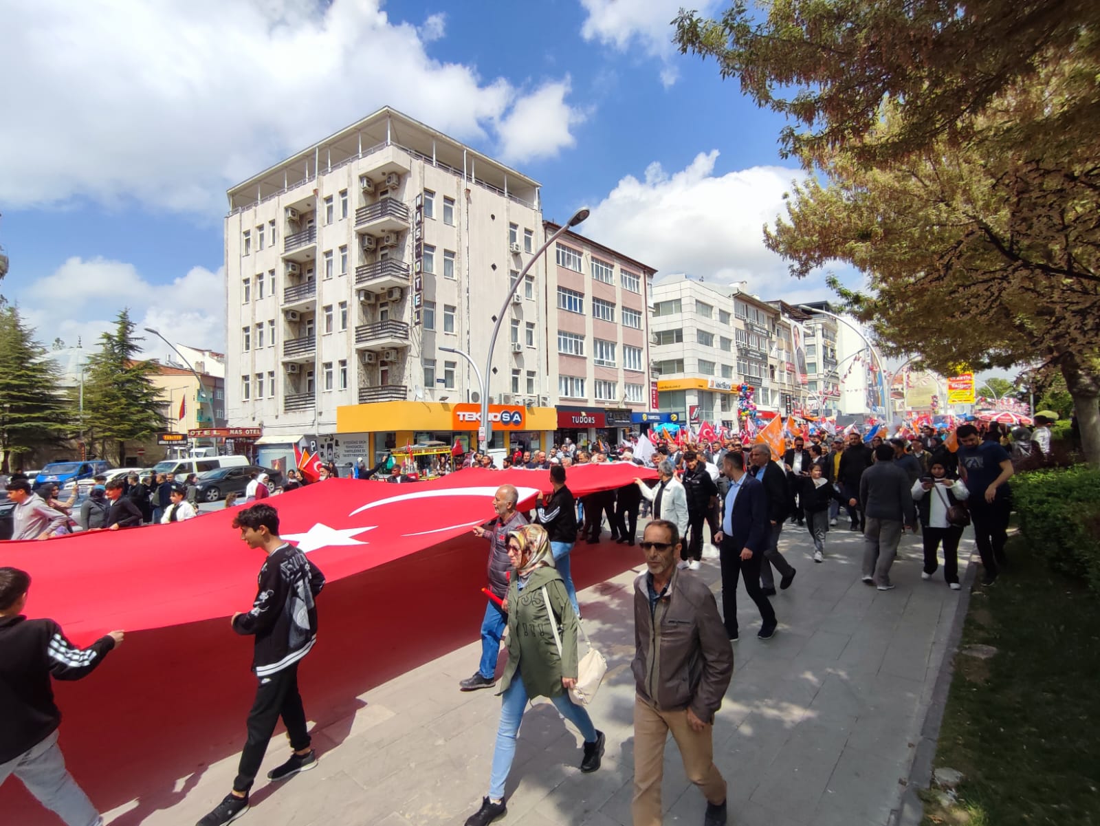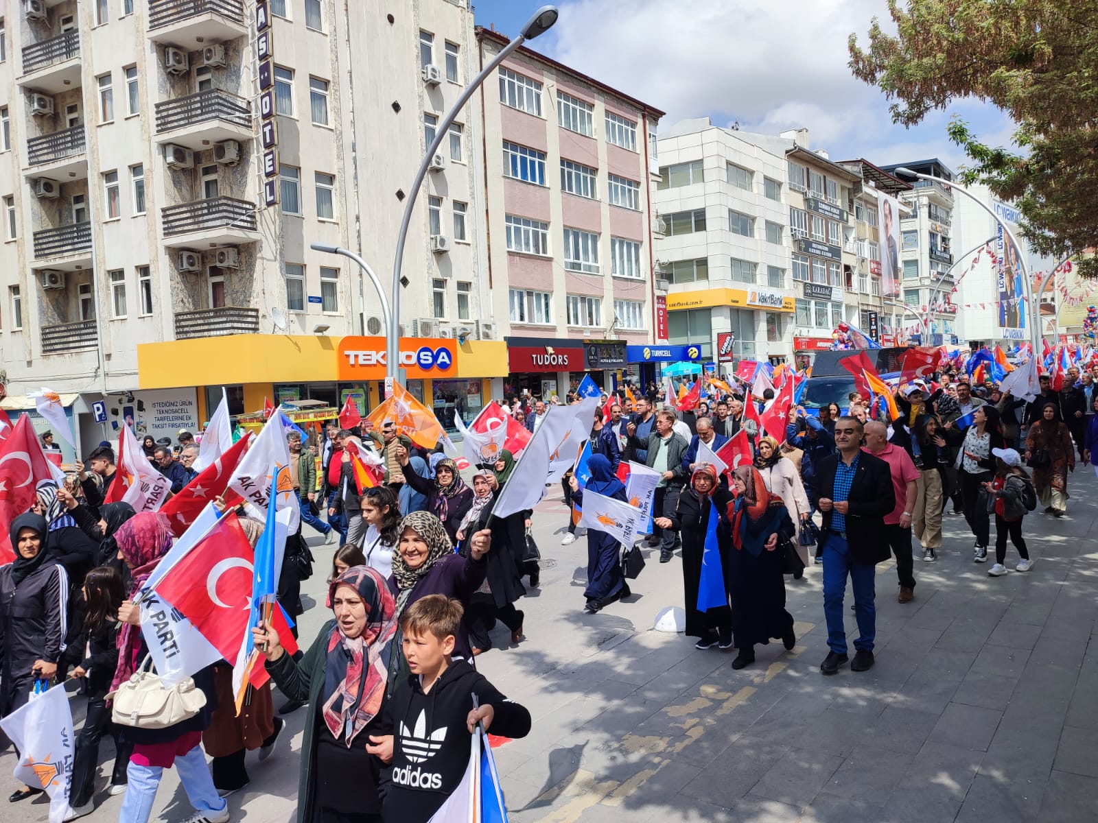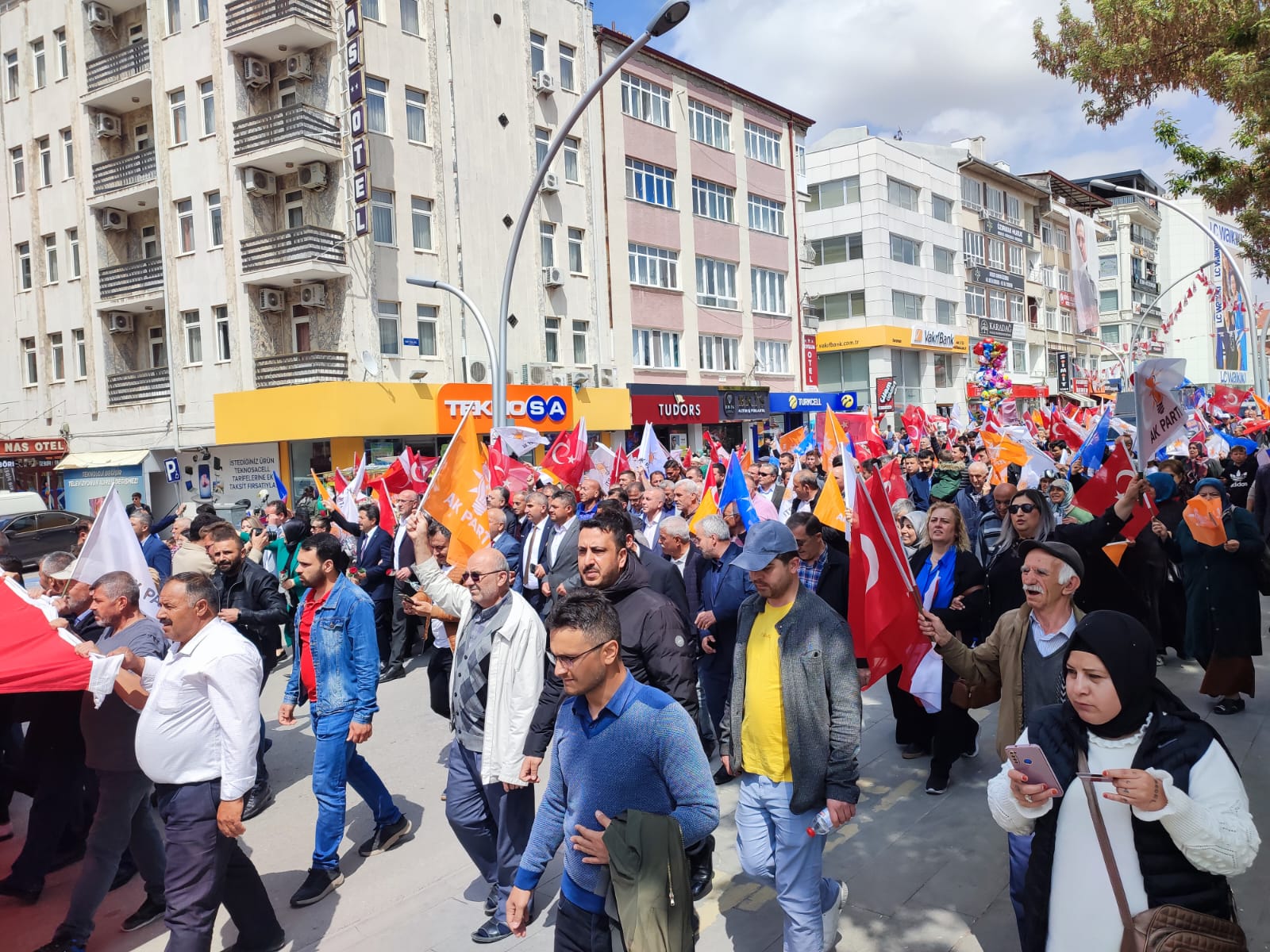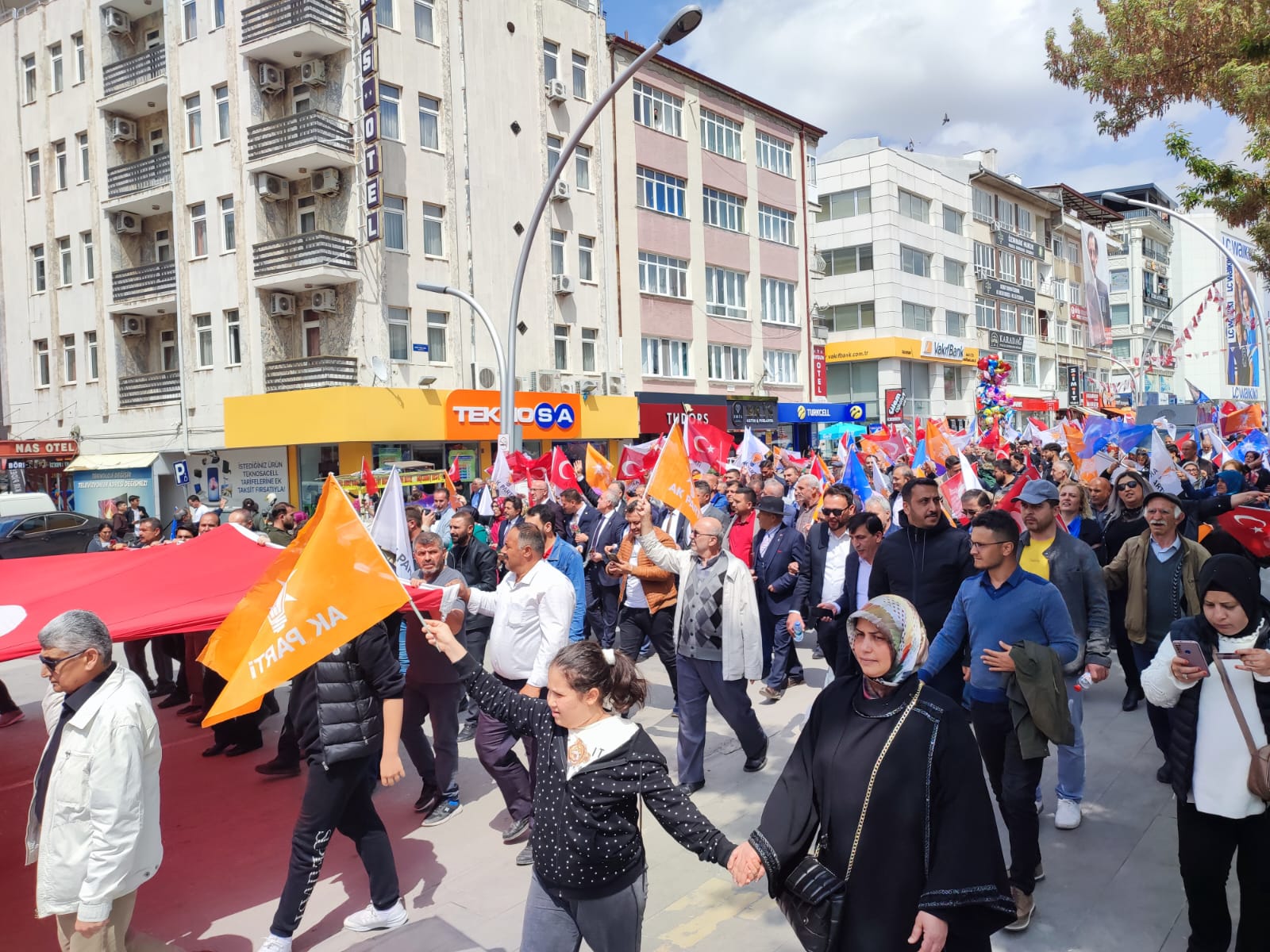 Yarın yapılacak olan Cumhurbaşkanlığı ve milletvekili genel seçimleri öncesinde saha programlarını aksatmadan sürdüren AK Parti Karaman teşkilatı, seçimin 1 gün öncesinde yürüyüş düzenledi. AK Parti İl binası önünde toplanan kalabalık, ellerindeki bayraklarla 1. İstasyon Caddesindeki seçim bürosuna kadar yürüdü. Karaman halkı yarın gerçekleşecek olan seçim öncesi AK Parti’ye destek vermek adına yürüyüşe yoğun katılım sağladı.