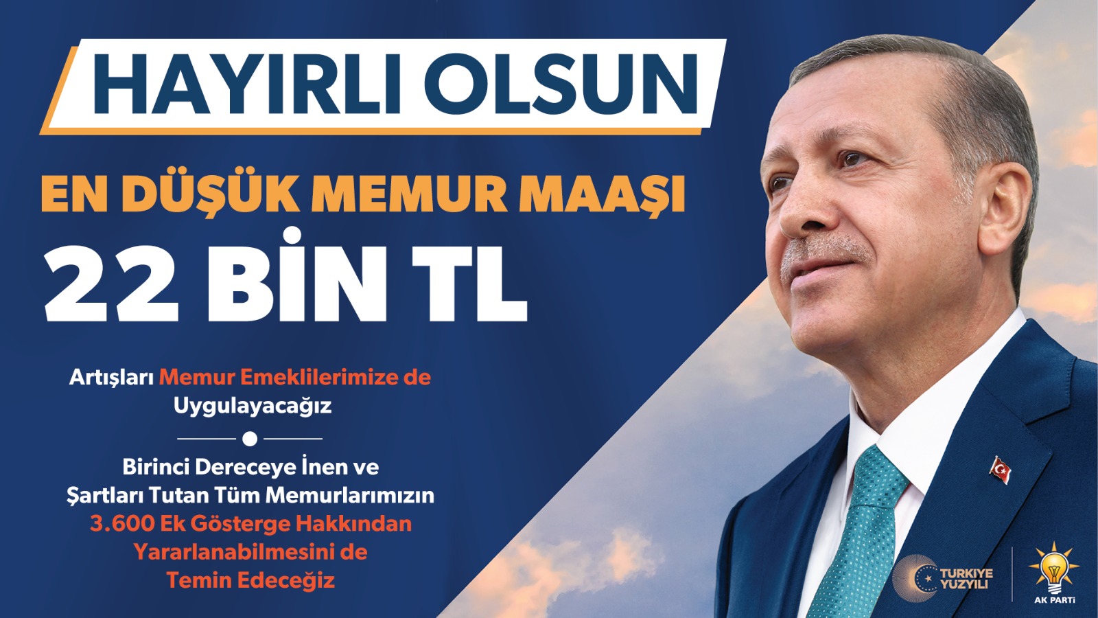 AK Parti Karaman İl Başkanı Av. Murat Öztürk, Cumhurbaşkanı Recep Tayyip Erdoğan'ın Temmuz ayında en düşük memur maaşının 22 bin lira olacağı yönündeki açıklamasının ardından, Cumhurbaşkanı Recep Tayyip Erdoğan’a teşekkür etti.