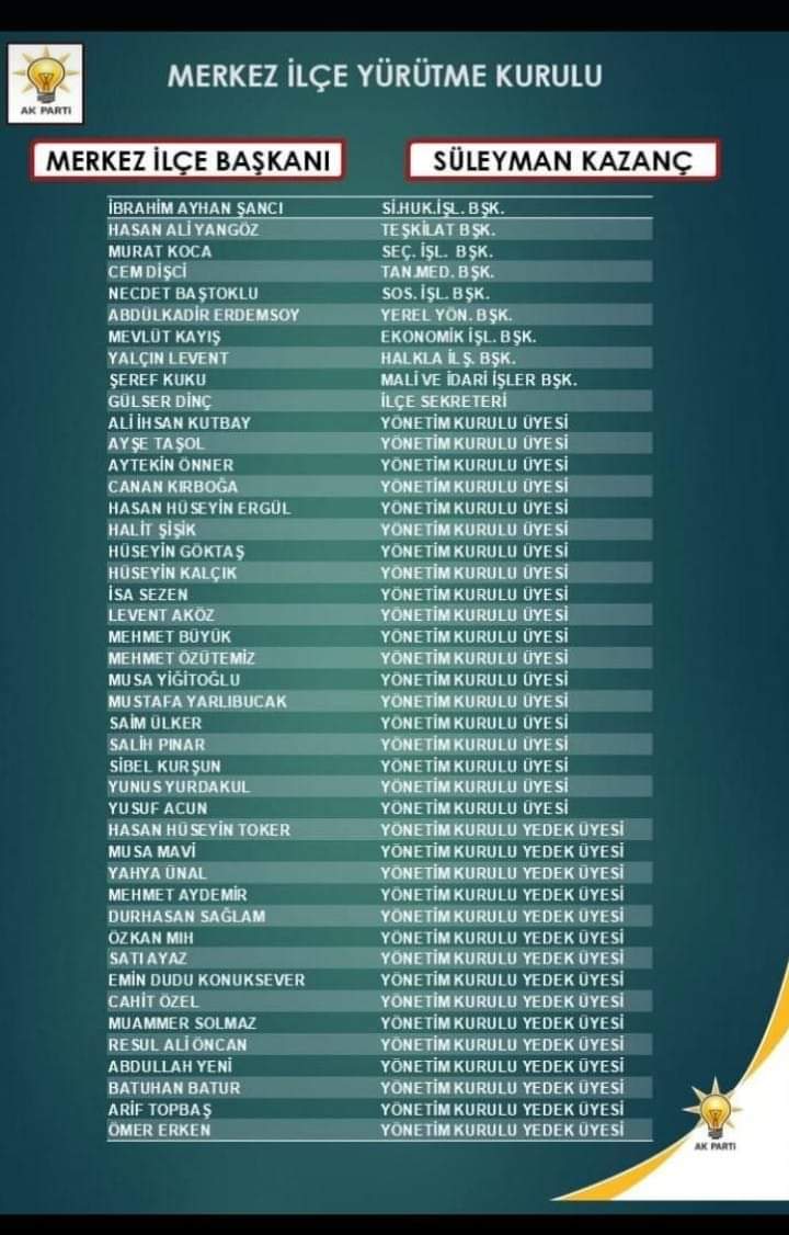 AK Parti Karaman Merkez İlçe Yönetim Kurulu Belli Oldu!
