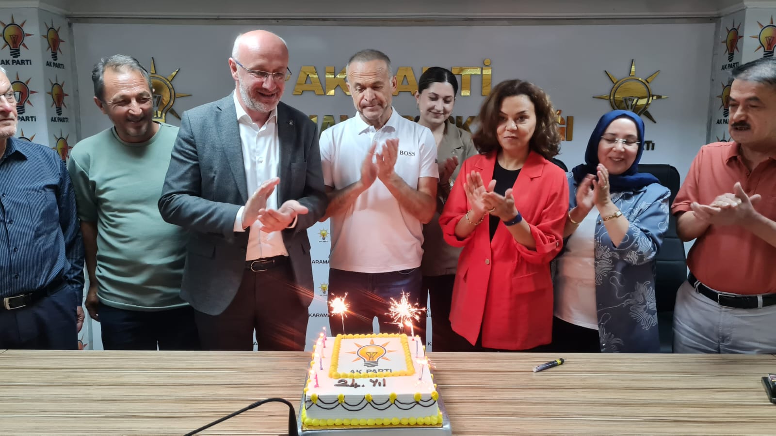 AK Parti Karaman İl Yönetimi 24 yaşına gelen AK Parti için pasta keserek bir araya geldi.Partiden yapılan açıklamada şu ifadeler yer aldı;AK Parti Karaman İl Başkanlığı olarak, partimizin 24. kuruluş yıl dönümünü büyük bir gurur ve heyecanla kutladık. Kuruluşumuzdan bugüne görev yapmış İl Başkanlarımız, Merkez İlçe Başkanlarımız, geçmiş dönem Kadın Kolları Başkanlarımız ve Gençlik Kolları Başkanlarımızla birlikte AK Parti İl Başkanlığı binamızda bir araya gelerek bu anlamlı günü pasta keserek taçlandırdık.Milletin iradesini merkeze alan, hizmet ve eser siyasetiyle Türkiye’ye çağ atlatan AK Parti’miz, 24 yıldır aynı inanç, aynı azim ve aynı kararlılıkla yoluna devam ediyor. Cumhurbaşkanımız ve Genel Başkanımız Sayın Recep Tayyip Erdoğan’ın liderliğinde; dün olduğu gibi bugün de yarın da hedefimiz büyük, yolumuz uzun, sevdamız millet!