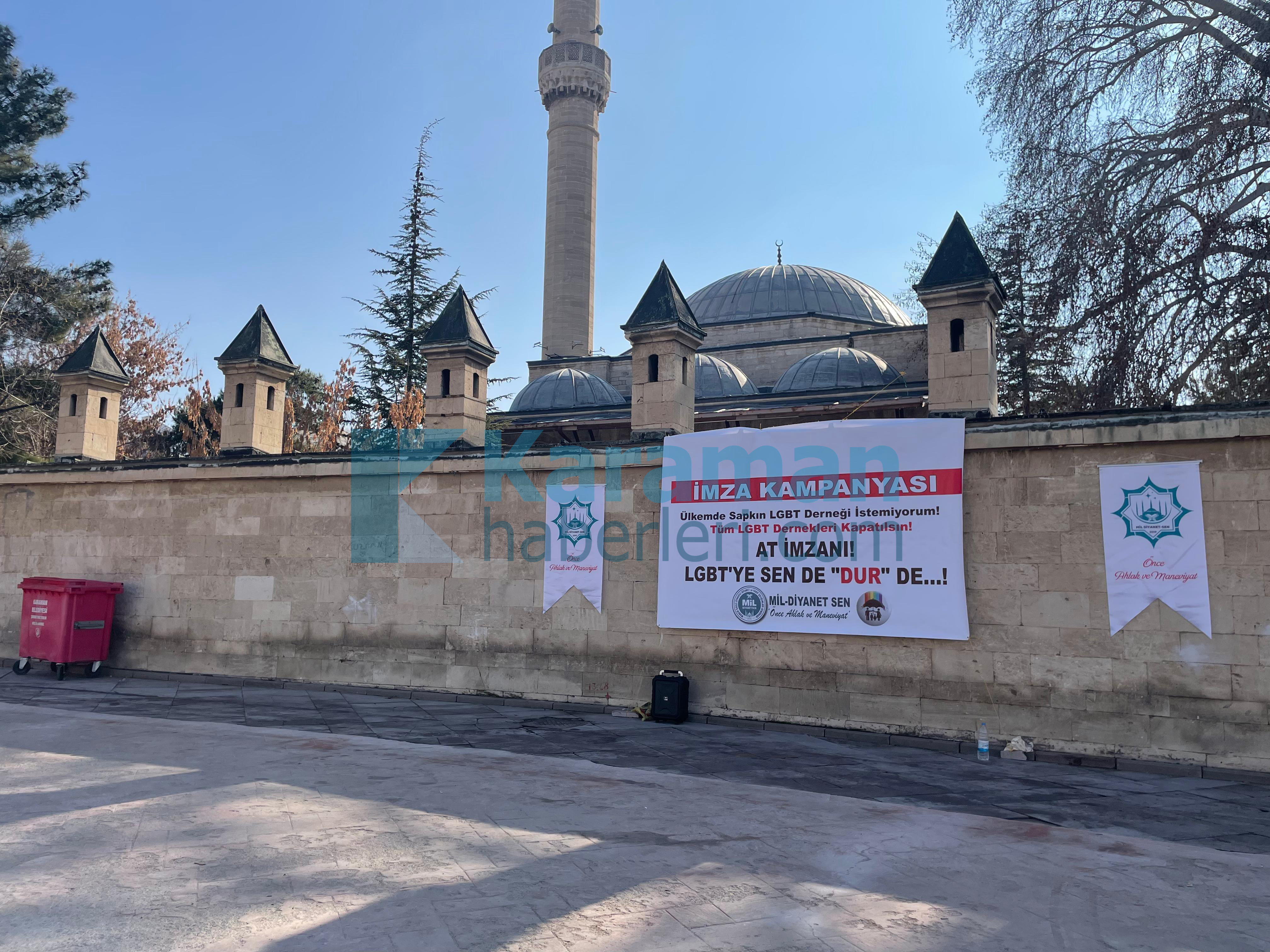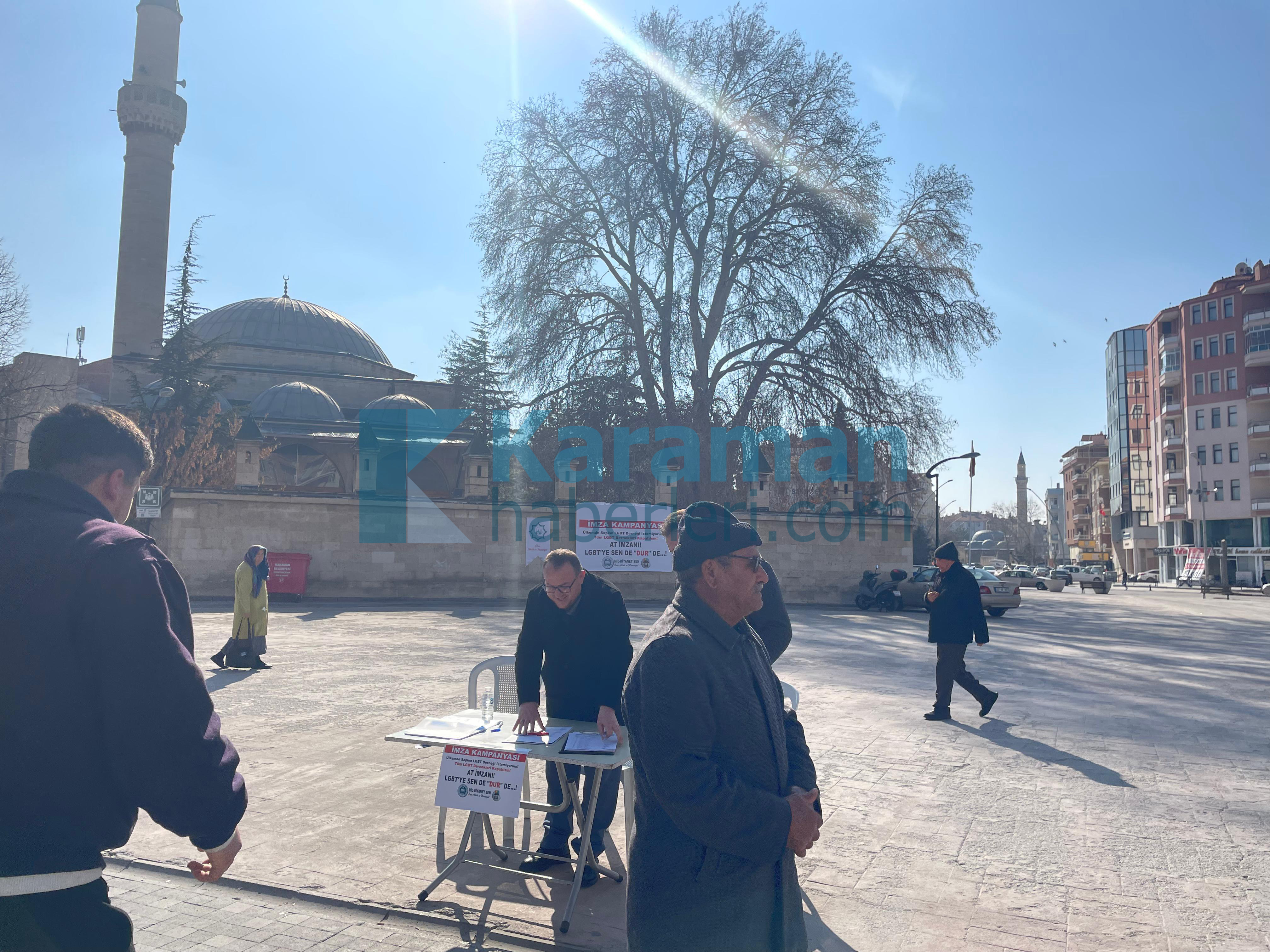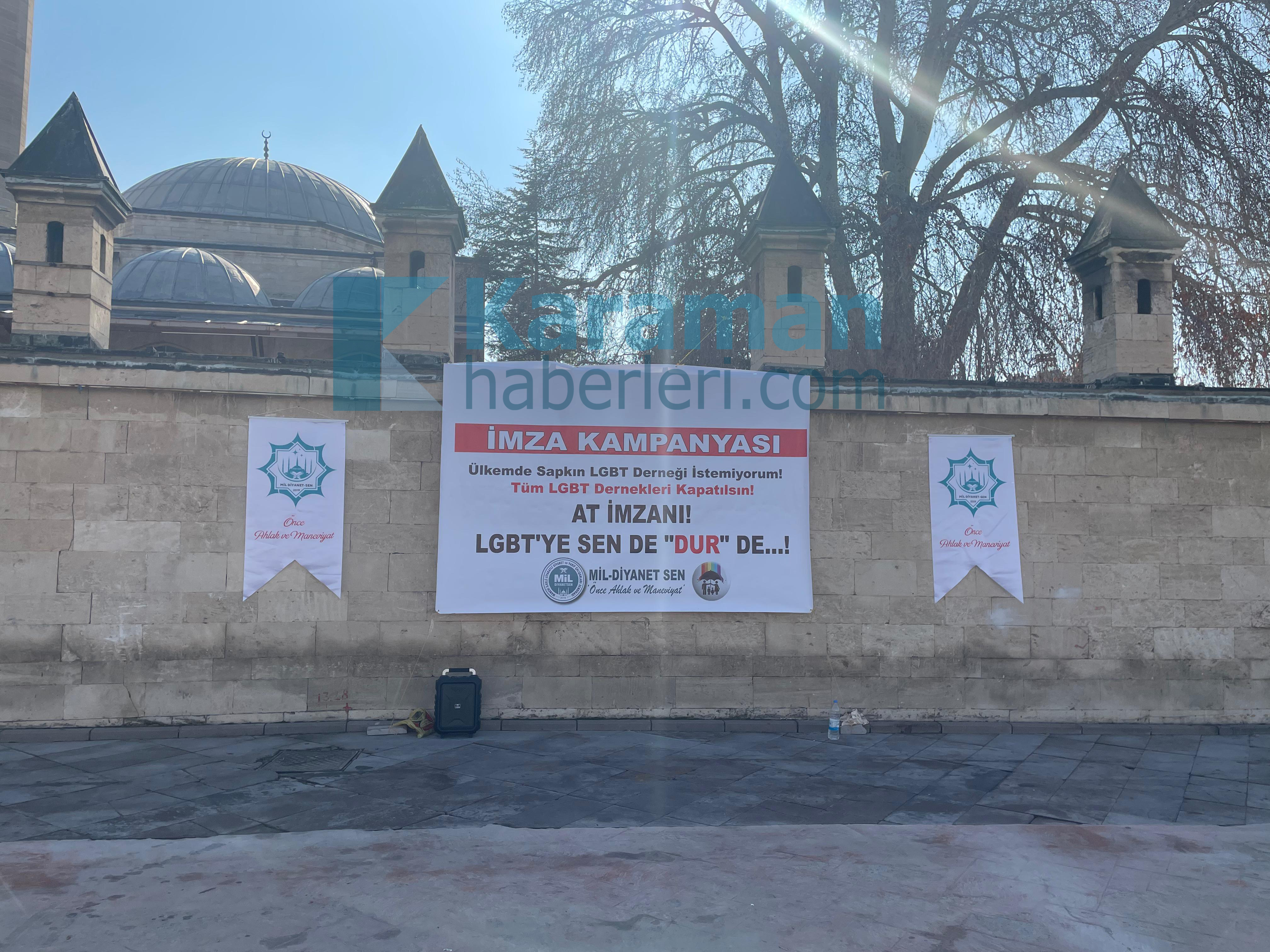 Karaman Mil Diyanet-SEN İl Başkanlığı LGBT dernekleri kapatılsın diye imza kampanyası düzenledi.Karaman Mil Diyanet-SEN İl Başkanlığından yapılan açıklamada şu ifadeler yer aldı;"LGBT derneklerinin kapatılması ve tüm faaliyetlerinin yasaklanması için Mil-Diyanet Sen İl Başkanlığı olarak başlattığımız imza kampanyasına hepiniz hoş geldiniz, safalar getirdiniz. Kampanyamızın hayırlara vesile olmasını Cenabı Allah'tan temenni ve niyaz ediyorum.Malumunuz olduğu üzere; Cumhurbaşkanımız Sayın Recep Tayyip Erdoğan, "LGBT gibi sapkın bir yapıyla mücadele edeceğiz" ifadelerini kullanmış ve buna istinaden 2025 yılını ‘Aile Yılı’ olarak ilan etmiştir. Bizler de, ailede ve toplumda yaşanan sosyal çürüme ve ahlaki yozlaşmayı önlemeye ilişkin ciddi çalışmalar yürüten Mil-Diyanet Sen olarak, sayın Cumhurbaşkanımıza destek olmak için bugün bu imza kampanyasını başlatıyoruz. "Önce Ahlâk ve Maneviyat" sloganıyla yola çıktığımız ilk günden bu yana, neslimizi ve kutsal aile yapımızı ifsat eden her türlü yapıyla mücadele ediyor ve LGBT derneklerinin kapatılması için gayret sarfediyoruz. Ayrıca bunların sözde kalmaması için gerekenleri de yapıyoruz. Hatta farklı tarihlerde İçişleri Bakanlığına, LGBT derneklerinin kapatılması için iki defa dilekçe vermiştik. Bugün burada talebimizi tekrar ediyor ve İçişleri Bakanlığı'nı görevini yapmaya davet ediyoruz.Başta Rusya olmak üzere birçok ülke, aileyi ve toplumu tehdit eden sapkın LGBT derneklerini kapatmış hatta propagandasını yasaklamıştır. ABD Başkanlığına yeniden seçilen Donald Trump da aynı şekilde LGBT’ye savaş açtığını ilan etmiştir. Ülkemizde de, ailemizi, gençliğimizi ve neslimizi ifsat eden sapkın LGBT derneklerinin kapatılması şarttır. İşte bunun için bizler de, bu ifsat hareketi ve sapkın yapıyla sonuna kadar mücadele edecek ve tertemiz neslimizin bozulmasına izin vermeyeceğiz.Desteğiniz ve katılımınız bizim için önemlidir. İmza kampanyamıza vermiş olduğunuz destek ve katılımınızdan dolayı teşekkür ediyor, saygılar sunuyorum."