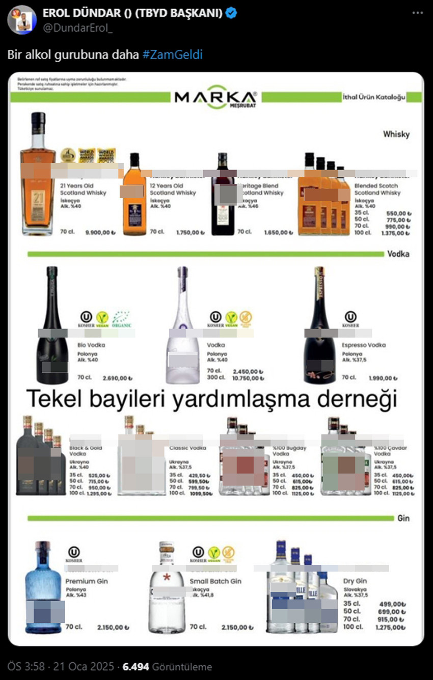 TİBYAD Başkanı Erol Dündar, konuyla ilgili yaptığı açıklamada, özellikle alkol tüketiminde bulunan vatandaşların ekonomik şartlar nedeniyle ciddi bir zorluk yaşadığını vurguladı. “Alkollü içeceklerde sürekli artan fiyatlar, hem perakende satış yapan bayilerimizi hem de tüketicileri zor durumda bırakıyor. Bu yıl başlangıcından itibaren uygulanan zamlara önemli bir yenisi daha eklendi,” dedi.