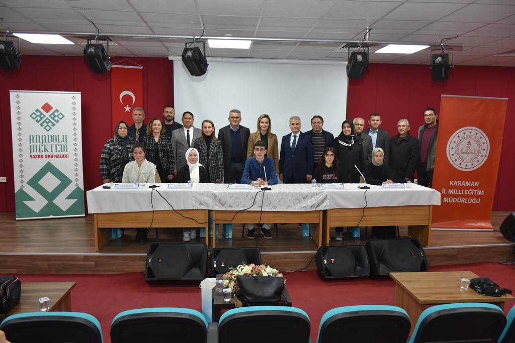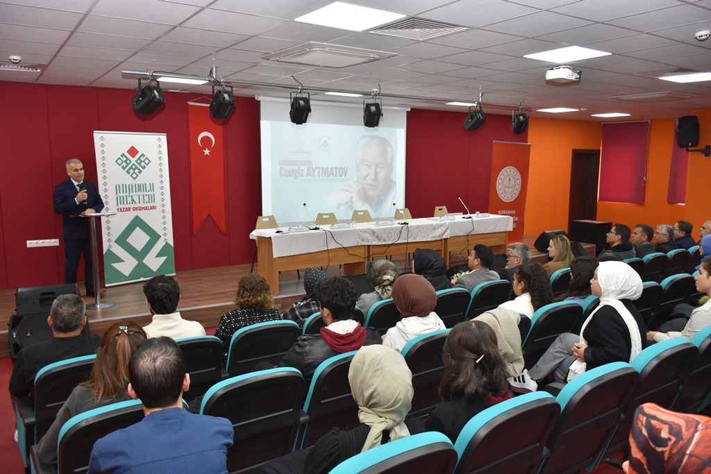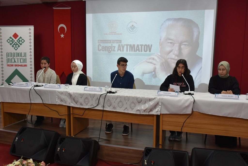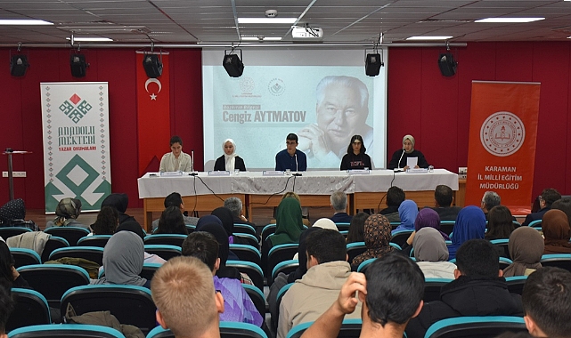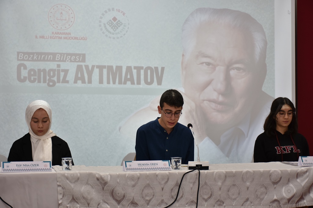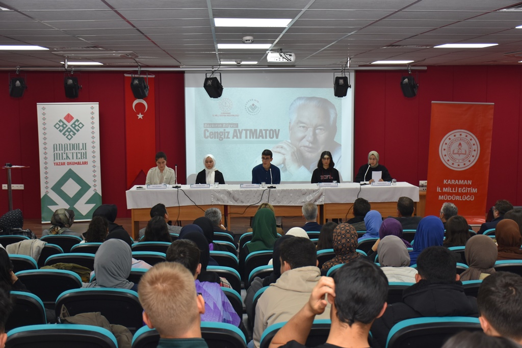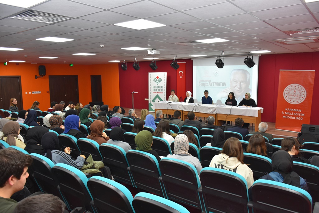 Karaman İl Millî Eğitim Müdürlüğü tarafından organize edilen ve Karaman Anadolu Mektebi öğrencilerinin görev aldığı Cengiz Aytmatov paneli, İl Millî Eğitim Müdürlüğü Konferans Salonu'nda gerçekleştirildi.