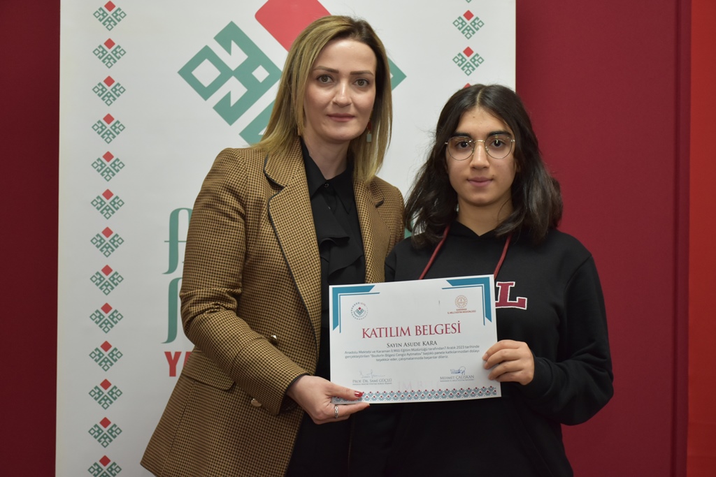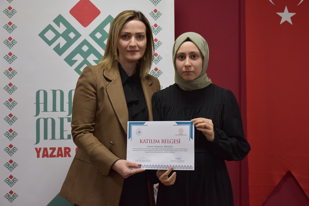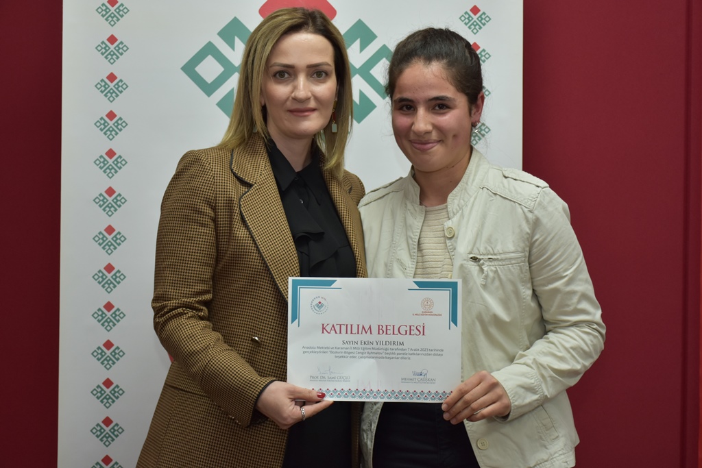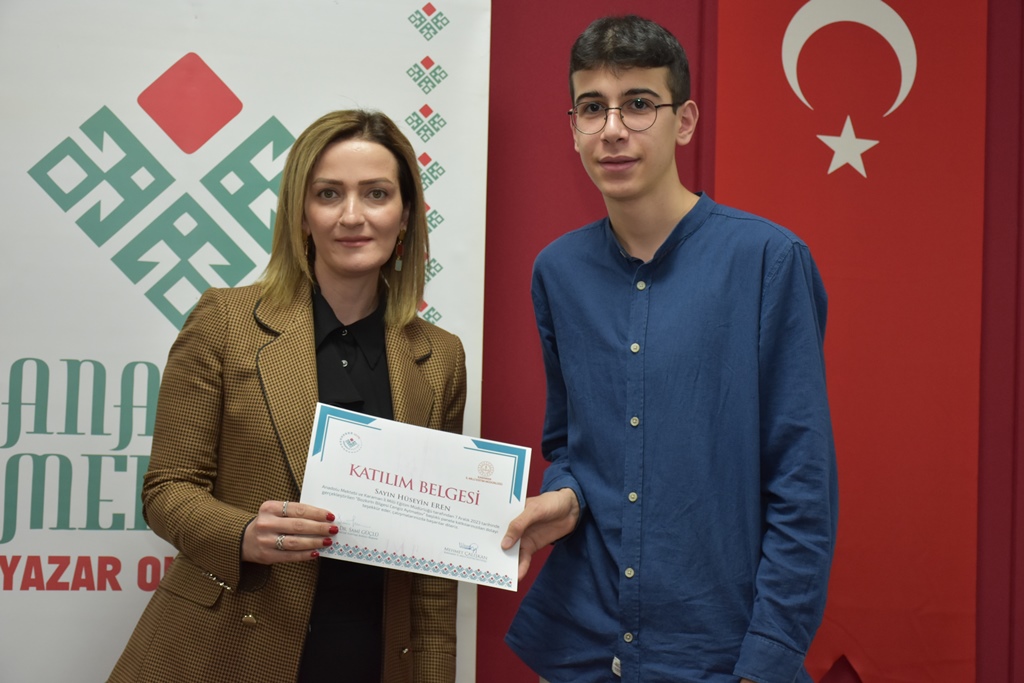 Karaman İl Millî Eğitim Müdürlüğü bünyesinde yürütülen Anadolu Mektebi Yazar Okumaları projesi kapsamında 'Bozkırın Bilgesi Cengiz Aytmatov' panelinde 4 panelist öğrenci panel sunumlarını gerçekleştirdiler.İl paneline, İl Millî Eğitim Müdür Yardımcısı Abdurrahman Kurt, Karaman Valisi Hüseyin Engin Sarıibrahim'in eşi Hanımefendi Hatice Sarıibrahim, KMÜ Türk Dili ve Edebiyatı Bölüm Başkanı Prof. Dr. İdris Nebi Uysal, Millî Eğitim Şube Müdürleri Aziz Demir ve Tayfur Topal, okul müdürleri, okul koordinatörleri, öğretmen ve öğrenciler katıldı.“Anadolu Mektebi’nin ilk aşamasında öğrencilerimiz edebiyatımızın güzelliklerine ve inceliklerine aşina olmaya başlıyorlar.”Programın açılış konuşmasını İl Millî Eğitim Müdür Yardımcısı Abdurrahman Kurt yaptı. Anadolu Mektebi'nin Karaman'da gerçekleştirdiği faaliyetlere ilişkin bilgiler veren Abdurrahman Kurt, proje kapsamında ilimizde çalışmaların genişleyerek sürdüğünü ifade etti. Abdurrahman Kurt, "Anadolu Mektebi çalışmalarını yedi yıldır Karaman’da yürütüyoruz. Bu süreçte yüzlerce öğrencimiz Anadolu Mektebi ile tanıştı. Azimli ve gayretli öğrencilerimiz istikrarlı bir şekilde okumalarını yürüttüler. Bu okumaların sonunda öğrencilerimiz okul, il ve Türkiye’de gerçekleştirilen panellere katıldılar. Bu çalışmada yer alan öğrencilerimizi gönülden tebrik ediyoruz. Anadolu Mektebi çalışmasında öğrencilerimize destek veren, yönlendiren, hiçbir maddi beklentisi olmayan ve maddi bir kazanımı da olmayan bir çalışma içerisinde yer alan koordinatör öğretmenlerinize de teşekkür ediyorum." dedi.Anadolu Mektebinin iki aşaması olduğuna dikkat çekerek konuşmasına devam eden Müdür Yardımcısı Abdurrahman Kurt, “Anadolu Mektebi’nin ilk aşamasında öğrencilerimiz edebiyatımızın güzelliklerine ve inceliklerine aşina olmaya başlıyorlar. İkinci aşamasında ise öğrencilerimiz fikir dünyasının derinliklerine vakıf olmaya başlıyor ve aynı zamanda bu fikir âlemine katkı sağlamaya başlıyorlar. Bu çalışmalarda üniversitemizden bizlere ciddi bir destek sağlanıyor. Özellikle İdris Nebi Uysal Hocamız bizlere destek veriyor. Katkılarından dolayı Hocamıza teşekkür ediyorum.” diyerek konuşmasını tamamladı.Açılış konuşmasının ardından panel sunumlarına geçildi. Panel başkanlığını Prof. Dr. Ömer Dinçer Anadolu İmam Hatip Lisesi öğrencisi Hüseyin Eren’in yaptığı panelde 15 Temmuz Şehit Muhammed Yalçın Kız Anadolu İmam Hatip Lisesi öğrencisi Ayşegül Bilgili, "Aymatov’un Eserlerinde Gidenlerin Ardından Kalanlar" konulu panel metnini, Karaman Türkiye Odalar ve Borsalar Birliği Fen Lisesi öğrencisi Asude Kara, "Cengiz Aytmatov'un Kitaplarında Aile" konulu panel metnini, Karaman Necip Fazıl Kısakürek Sosyal Bilimler Lisesi öğrencisi Elif Nisa Özer, "Aytmatov ile Sevgi Lisanı" konulu panel metnini ve Karaman Anadolu Lisesi öğrencisi Ekin Yıldırım ise "Cengiz Aytmatov ve İçimizdeki Savaş" konulu panel metnini misafirlerle paylaştı.“Anadolu Mektebi’nde hızlı okuma tekniği ile değil, dura dura ve sindire sindire okumak vardır.”Program sonunda panel değerlendirmesini yapan KMÜ Türk Dili ve Edebiyatı Bölüm Başkanı Prof. Dr. İdris Nebi Uysal, Anadolu Mektebi'nin 12 yıl önce Sakarya'da başlayan bir okuma hareketi olduğunu ifade etti. İdris Nebi Uysal, “Anadolu Mektebi bir hareket, bir dava, bir ideal peşinde atılan adımdır. Mezun vermeyen ve mezun olunamayan bir mektep, Anadolu Mektebi'dir. Anadolu Mektebi’nde bir yazarın bütün külliyatını okumak var. Hızlı okuma tekniği ile değil, düşünerek okumak var. Üzerinde dura dura okumak var. Sindire sindire okumak var. Panelistlerimizden Ayşegül Bilgili, "Aymatov’un Eserlerinde Gidenlerin Ardından Kalanlar" isimli güzel bir konu seçti. Kendi hayatını da işin içerisine katarak ve yaşayarak gurbeti, sılayı anlattı. Asude Kara, çok önemli, güncel bir konu olan aile kavramı üzerinde durdu ve aile bağlarından bahsetti. Elif Nisa Özer, sevgi dilinden söz etti. Cengiz Aytmatov’un roman ve hikâyelerinde bir şekilde karşımıza çıkar o sevgi dili. İnsanı sevmek ve bunu dile getirebilmek çok önemlidir. Son panelistimiz Ekin Yıldırım ise bizi güncel bir konu ile buluşturdu. Yıldırım, dışarda yaşanan savaşlardan, insanın kendi içindeki savaşa doğru yolculuğunu aktarmaya çalıştı. Ben tüm panelist öğrencilerimizi tekrar tebrik ediyor, bu yürüdükleri kutlu yolda başarılar diliyorum." diye konuştu.Panel, sunumlarının değerlendirmesinin ardından günün anısına verilen katılım belgesi, hediyeler ve çekilen fotoğraflarla program sona erdi.