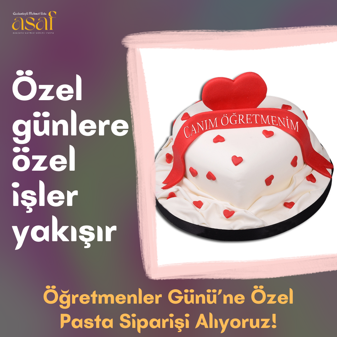 Öğretmenler Günü için de uygun fiyattan kaliteli malzemeler ile özel pasta siparişi alan Asaf Pasta Kafe'ye aşağıdaki iletişim numarasından ulaşabilirsiniz. Siz isteğinizi anlatın, Asaf gerisini halleder...