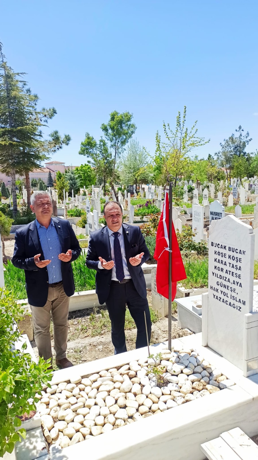 İYİ Parti Karaman Milletvekili adayları ve il teşkilatı yöneticileri ‘3 Mayıs Türkçülük Günü’ sebebiyle Karaman Şehir Mezarlığı’nda bulunan şehitlik anıtını ve ülkücü şehit Abdullah Demirci ve Ziya Duru’nun kabrini ziyaret etti. Ardından Zorlu, ülkücü şehitler Abdullah Demirci ve Ziya Duru’nun kabrine yeni Türk Bayrağı asımı ve kabir bakımını yapılmasını sağladı. Akabinde 3 Mayıs Türkçülük Günü nedeniyle şehitlerin kabirleri başında Kur’an-ı Kerim tilaveti okundu. Ülkücü şehitlerin kabirleri başında dua eden Zorlu:“Yerinde ve zamanında gözünü kırpmadan kendisini vatan için siper eden ülküdaşlarımız, ülkücü şehitlerimize bu vatanın bir neferi olarak çok şey borçluyuz. Bizler bu sorumluluğun bilincindeyiz. Bu toprakların üzerinde, bu ay yıldızlı ve rengini şehitlerimizin kanından alan al bayrağımızın altında rahatça nefes alabiliyorsak, vatan için can veren şehitlerimizin sayesindedir.