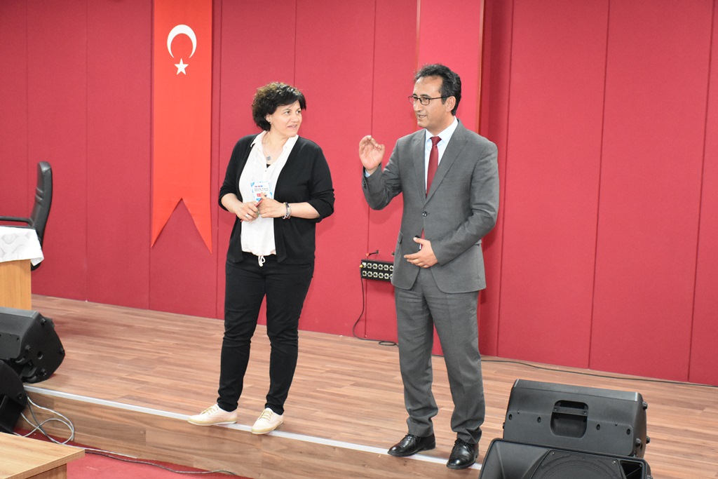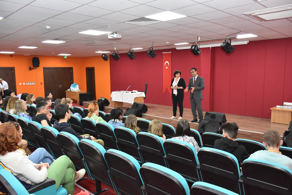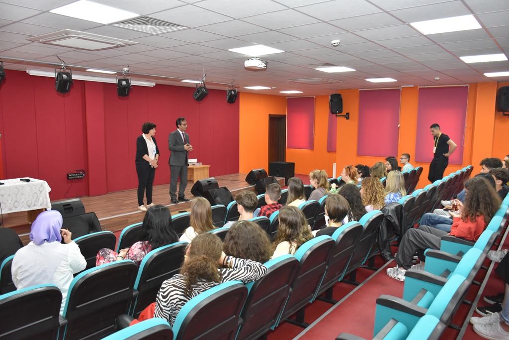 Ülkemize ve Karaman'a hoş geldiniz diyerek konuşmasına başlayan İl Müdürü Mehmet Çalışkan, Avrupalı misafirlerini ilimizde ağırlamaktan dolayı memnun olduğunu dile getirdi. Mehmet Çalışkan, "Avrupa Birliği projeleri farklı ülkelerden gelen öğrencileri ve eğitimcileri buluşturan çalışmalardır. Bu tür projeleri kurum olarak önemsiyoruz. Sizleri Karaman’da misafir etmekten dolayı mutluyuz. Baktığınız zaman ortak bir miras oluşturduğumuza inanıyorum ve bu ortak miras çatısı altında kendi kültürümüzü yansıtıyoruz.” dedi.Karaman’ın tarihi, kültürü, medeniyeti ve yaşanmışlıklarıyla kadim bir şehir olduğunun altını çizen İl Müdürü Mehmet Çalışkan, “Mevlana Celaleddin Rumi'nin annesi Mümine Hatun ile kardeşlerini, Yunus Emre, Piri Reis ve Dursun Fakih şehrin tarihi ve tanınmış kişilerini Avrupalı misafirlerine anlattı. Çalışkan, “Karaman’ın tarihi camilerinden biri olan İmaret Camisi’nin kapısında şöyle bir yazı var: ‘Kapımız açıktır girene, lokmamız helâldir yiyene’ bizim felsefemiz ve anlayışımız bu. Sizleri bu anlayışla şehrimizde misafir ediyoruz. Bu ziyaretiniz güzelliklere, kaynaşmanıza ve hayırlara vesile olur inşallah. Projenizde ve çalışmalarınızda başarılar diliyorum.” diyerek sözlerini tamamladı.Proje kapsamında öğrenciler siber zorbalık ve güvenli internet konusunda farkındalık oluşturacak çalışmalara imza atarken konu hakkında bilinçlendirme çalışmaları yapıldı.Ziyaret, günün anısına verilen hediyeler ve çekilen fotoğraflarla sona erdi.