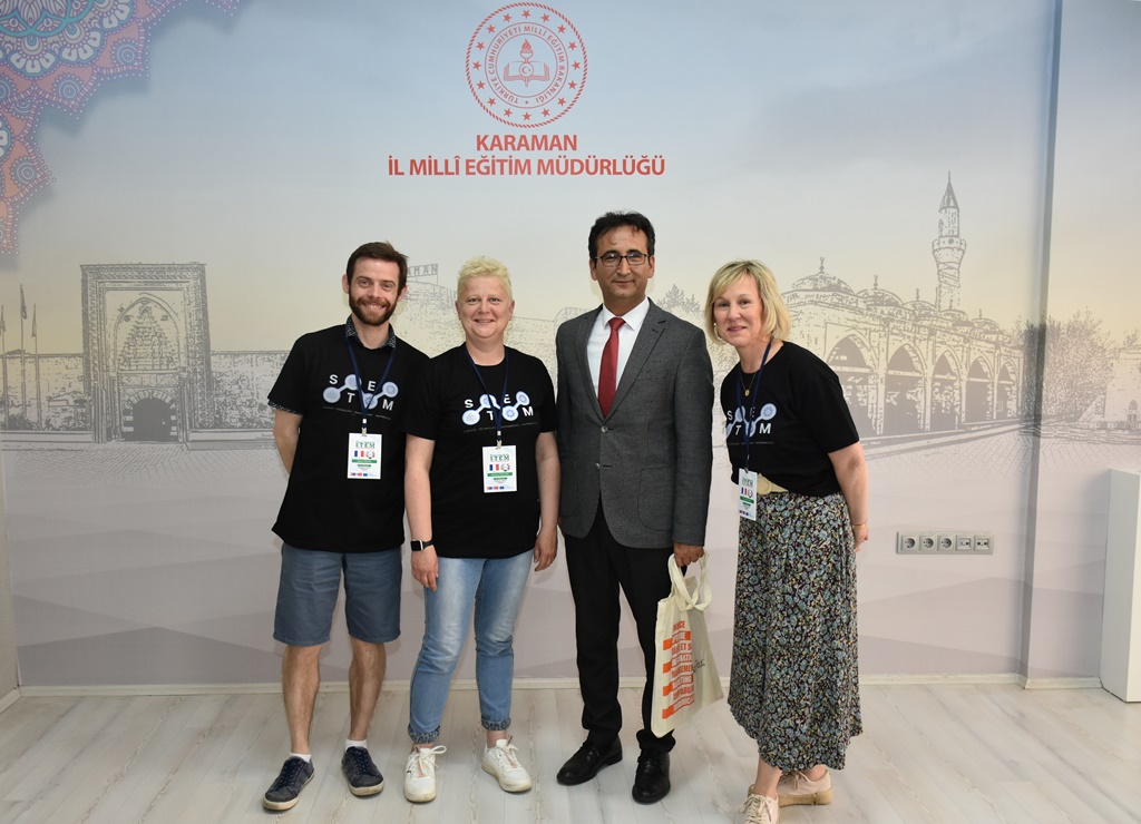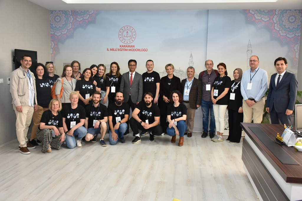 Hasan Erkan, “Okulumuz tarafından yürütülen Tebeşir’den STEM’e ve Yaşam’da STEM başlıklı projeler ile günümüzde kullanımı daha yaygınlaşan 3D yazıcılar üzerine gerçekleştirilen eğitim etkinlikleri kapsamında 3D yazıcılar ile ürün tasarlama ve ürün çıktısını alma işlemini öğrenen katılımcılar aynı zamanda ilimiz ve ülkemizin farklı bölgelerini ziyaret ederek ülkemizin sahip olduğu güzellikleri görme fırsatı bulacaklar.” dedi.“Tüm insanlığın ortak bir kültürü ve mirasının olduğunu düşüyorum.”Avrupalı eğitimcileri selamlayarak konuşmasına başlayan İl Milli Eğitim Müdürü Mehmet Çalışkan, projelerin farklı ülkelerin eğitim sistemini ve farklı kültürleri tanımak açısından fırsat oluşturduğunu belirterek okulların bilimsel bir proje çatısı altında yer almasının kendisini mutlu ettiğini ifade etti. Çalışkan, “Farklı coğrafyalarda yaşıyor olabiliriz. Farklı kültürlere sahip olabiliriz. Ama tüm insanlığın ortak bir kültürü ve mirasının olduğunu düşüyorum. Okullarımızın yer aldığı projelerle öğrencilerimiz ve öğretmenlerimiz, dünya üzerindeki ortak mirasımızı farklı ülkelerde görme fırsatı yakalıyor. İnşallah katıldığınız proje hem size hem de öğrencilere önemli katkılar sağlar.” dedi.Karaman’ın eğitimine ilişkin misafirlere bilgiler aktaran İl Müdürü Çalışkan, “Karaman eğitim açısından iyi bir durumda. Derslik başına düşen öğrenci sayımıza baktığımızda temel eğitimde 16 öğrenci, ortaöğretimde 14 öğrenci ve mesleki eğitimde ise bu sayının 8 olduğunu görüyoruz. Yani okullarımız fiziki anlamda ülke ortalamasının üstündedir. Eğitim açısından değerlendirdiğimizde ise okullarımızın hepsinde etkileşimli tahta bulunduğunu söyleyebilirim. STEM ve kodlama atölyelerimizi 4 yıl önce açmıştık. Karaman’da 40 okulumuzda STEM ve kodlama atölyemiz mevcut. Ülke çapında gerçekleşen TEKNOFEST yarışmasına öğrencilerinizi bu atölyelerimizde hazırlıyoruz.” diye konuştu.“Geçmişten günümüze birçok bilim insanı çıkaran ve yetiştiren bir şehirde yaşıyoruz.”