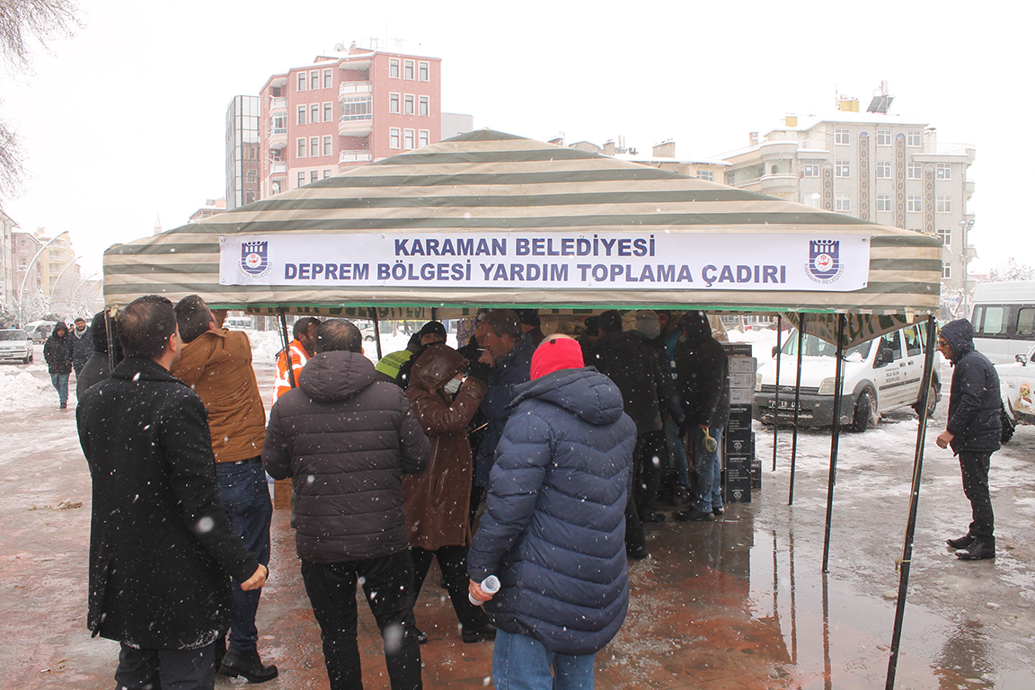 Aktekke Meydanında organize edilen yardım kampanyasına katılan tüm vatandaşlara teşekkürlerini bildiren Başkan Kalaycı, bu Aziz milletin el ele verince tüm zorlukların üstesinden geldiğini belirtti.Kalaycı: “6 Şubat Pazartesi günü merkez üssü Kahramanmaraş olan büyük deprem felaketinin hemen ardından Karaman genelinde yapmış olduğumuz çağrıya katılarak birlik ve beraberlik içerisinde yardımlaşmanın en güzel örneğini gösteren vefalı Karaman halkına teşekkür ediyorum. 7’sinden 70’ine yer yaştan vatandaşımızın yoğun ilgi gösterdiği, büyük bir dayanışma ve yardımlaşma ruhuyla seferber olduğu yardım kampanyasında onlarca tır yardım malzemesini deprem bölgesine gönderdik.Çağrımızı başlattığımız günden bu yana yardım kampanyamıza katılan vefalı Karaman haklına teşekkürlerimi bildiriyor, böylesi felaketleri Aziz milletimize bir daha yaşatmamasını Cenab-ı Hak’tan niyaz ediyorum. Aziz milletimizin başı sağolsun " sözlerini kullandı.