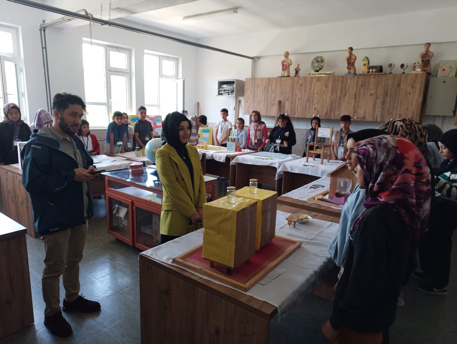 Misafirler, sergi alanında koordinatör öğretmen eşliğinde dolaşarak öğrencilerin 14 projesini yakından incelediler. Öğrenciler, merakla beklenen projelerini ziyaretçilere tanıtarak bilgi aktardılar. Bilim Fuarı, iki gün boyunca ziyaretçilere açık olacak.