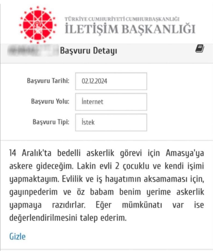 Bedelli askerliğe kendi yerine babası veya kayınpederinin gitmesi için CİMER'e başvurdu