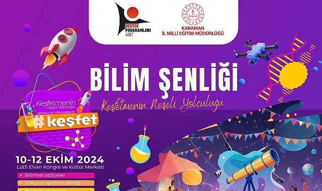 Karaman, Ekim ayında büyük bir bilim şölenine ev sahipliği yapmaya hazırlanıyor. Karaman İl Millî Eğitim Müdürlüğü ARGE Birimi tarafından 2023 çağrı döneminde başvurusu yapılan, 4007 Bilim Şenlikleri Destekleme Programı kapsamında aralarında üniversite ve diğer kamu kurum ve kuruluşlarının yer aldığı ve destek hakkı kazanan 57 projeden biri olmuştu. Bu kapsamda TÜBİTAK tarafından desteklenip Karaman İl Milli Eğitim Müdürlüğü ve SARAY-SEKASAR Vakfı iş birliğiyle düzenlenecek olan Karaman Bilim Şenliği, 10-12 Ekim 2024 tarihleri arasında Lütfi Elvan Kongre Merkezi’nde gerçekleştirilecek. Bilim ve teknolojinin buluşacağı bu üç günlük etkinlik, gençleri bilimsel keşiflere yönlendirmeyi ve onları geleceğin dünyasına hazırlamayı amaçlıyor.