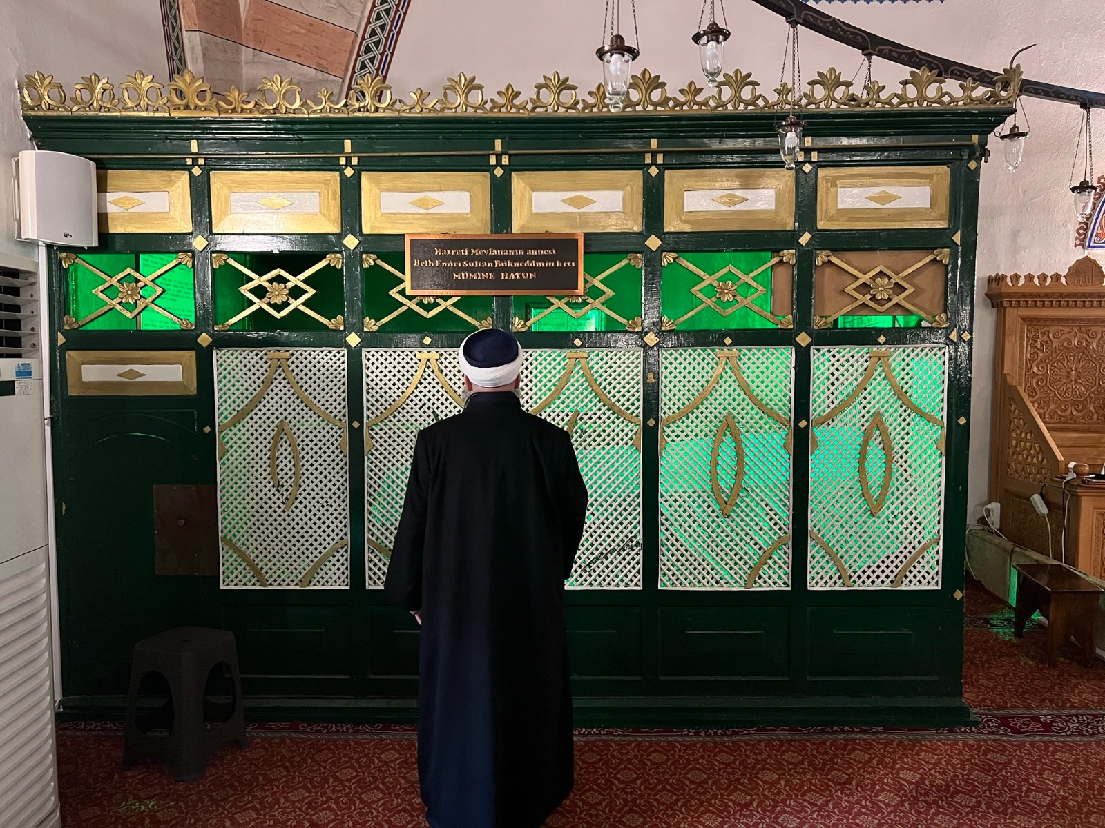 Karaman’da Hazreti Mevlânâ’nın annesi Mümine Sultan’ın türbesini ziyaret eden Cübbeli Ahmet Hoca, burada sandukanın üzerine yazılmış bir beyitin dikkatini çektiğini ifade etti. Beyitte yer alan ifadelerin inanç açısından sakıncalı olabileceğini belirtti.