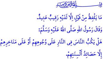 Bir gün Peygamber Efendimiz (s.a.s), sahabe-i kiramdan Muâz b. Cebel’e, “Sana dinini kemale erdiren ve onu tamamlayan şeyin ne olduğunu söyleyeyim mi?” buyurdu. Sonra da mübarek dilini eliyle tutup, “İşte şuna sahip çık.” dedi. Bunun üzerine Muâz, “Yâ Resûlallah! Biz söylediğimiz sözler sebebiyle de hesaba çekilecek miyiz?” diye sorunca Allah Resûlü (s.a.s), hepimizi yakından ilgilendiren şu cevabı verdi: “İnsanları cehenneme sürükleyen, dilleriyle kazandıkları değil midir?”[1]
