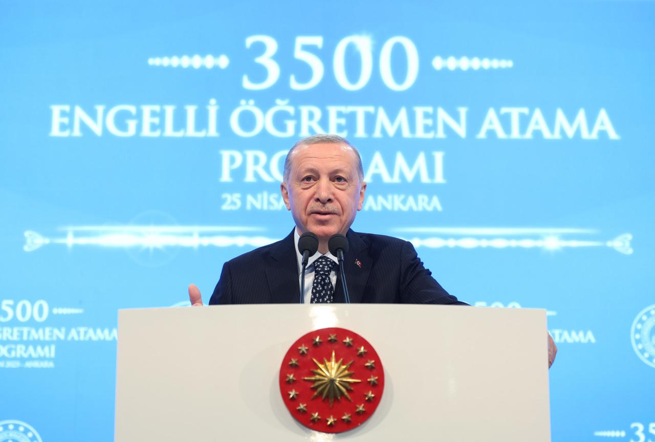 Cumhurbaşkanı Erdoğan, MEB Şura Salonu'nda “3 bin 500 Engelli Öğretmen Ataması Töreni'nde konuştu. Erdoğan'ın açıklamalarından satır başları:Önce vatanına milletine ailesine hayırlı evlatlar yetiştirmek için çalışıp didinirken canlarını feda eden öğretmenlerimizi rahmetle anmak istiyorum. Gözümüzün nuru evlatlarımızı dolayısıyla geleceğimizi emanet ettiğimiz öğretmenlerimiz için ne söylesek kafi gelmez. Böyle atamalarla, öğretmenlik meslek kanunu ile vefamızı gösteriyoruz. Sizlerin yanınızda olduğumuzu göstermeye devam edeceğiz. Bu arada sözleşmeliden memur statüsüne geçen öğretmenlerimize de kadrolarının hayırlı olmasını diliyorum. MAYIS AYINDA 45 BİN ATAMA YAPILACAKMayıs ayında gerçekleştirmeyi planladığımız 45 bin yeni sözleşmeli öğretmen ataması gibi müjdelerle sizlerin yanında olduğumuzu göstermeyi sürdüreceğiz.Kariyer sistemi getiren bu kanunla mali ve sosyal haklarda iyileşme yaptık. Birileri ortalığı karıştırmak için harekete geçti. Öğretmenlerimiz kazanımlarına sıkı sıkıya sahip çıktı. Baş öğretmen ve uzman öğretmen unvanlarını alan öğretmenlerimiz mali haklarından da yararlanmaya başladı. 517 bine yakın öğretmenimizi bir kez daha tebrik ediyorum. Baş öğretmen maaşı 25 bin uzman öğretmen maaşı da 22 bin 500 lirayı buldu. Her iyileştirmeden öğretmenlerimiz de yararlanmaya devam edecektir."BİZ ZİHNİYET DEVRİMİ GERÇEKLEŞTİRDİK"Türkiye uzunca süre engelli bireylerinin haklarını kullanabilmesi konusunda ciddi eksiklikler yaşadı. Ülkemizin her ferdi biriciktir. Engellilerini ihmal eden ülke potansiyelinin bir kısmından vazgeçmiş demektir. Biz zihniyet devrimi gerçekleştirdik. Engellilerimizin hayatının her alanında gurur duyuyorsak bu dönüşüm sayesindedir. Ülkemizi dünyaya örnek olacak bir duruma çıkarmakta kararlıyız. Çocuklarımıza gençlerimize vereceğimiz en büyük hediye onları bu özgüvene sahip kılmaktır. Eğitim öğretimle birlikte teknolojiye yaptığımız yatırımların gerisinde bu gaye vardır. Biz milletimizin kendisine imkan sağlandığında ve fırsat verildiğinde neler yapabileceğini çok iyi biliyoruz. Siyasi, ekonomik, kültürel her alanda başarılı olan vatandaşlarımızın bu başarıları katlayarak artıracağından şüphe duymuyoruz. ERDOĞAN LİSEDEKİ ANISINI ANLATTILise yıllarında bir öğretmenimiz vardı ve bize bir örnek mektup okumuştu:"Varlık sebebim bana edebi öğreten muhterem hocam" mektup böyle başlıyor. Şu edebe bak, nasıl bir mektup ve hocasına bu başlıkla mektup yazıyor. İnanıyorum ki hocalarımız aynı şekilde öğrencilerine böyle edebiyatı öğretmeye devam edecek. BAŞVURANLARIN TAMAMI ATANACAKMilli Eğitim Bakanı Mahmut Özer, "Sayın Cumhurbaşkanımız bir müjde veriyor; 4 bin 300 öğretmen başvurmuştu, bugün 3 bin 500 atamayı gerçekleştirdik. Geriye kalan engelli öğretmelerimizi de atayacağız" açıklamasını yaptı.