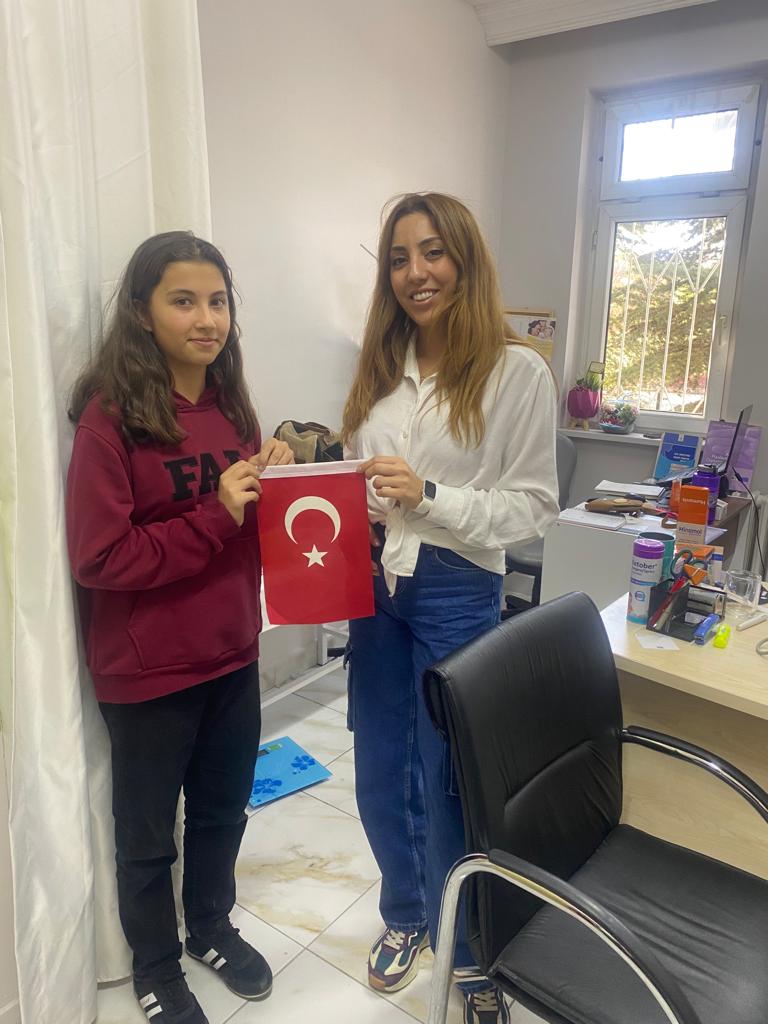 Cumhuriyet'imizin 100. yılında 100 öğrenci, 100 bayrak hediye etti