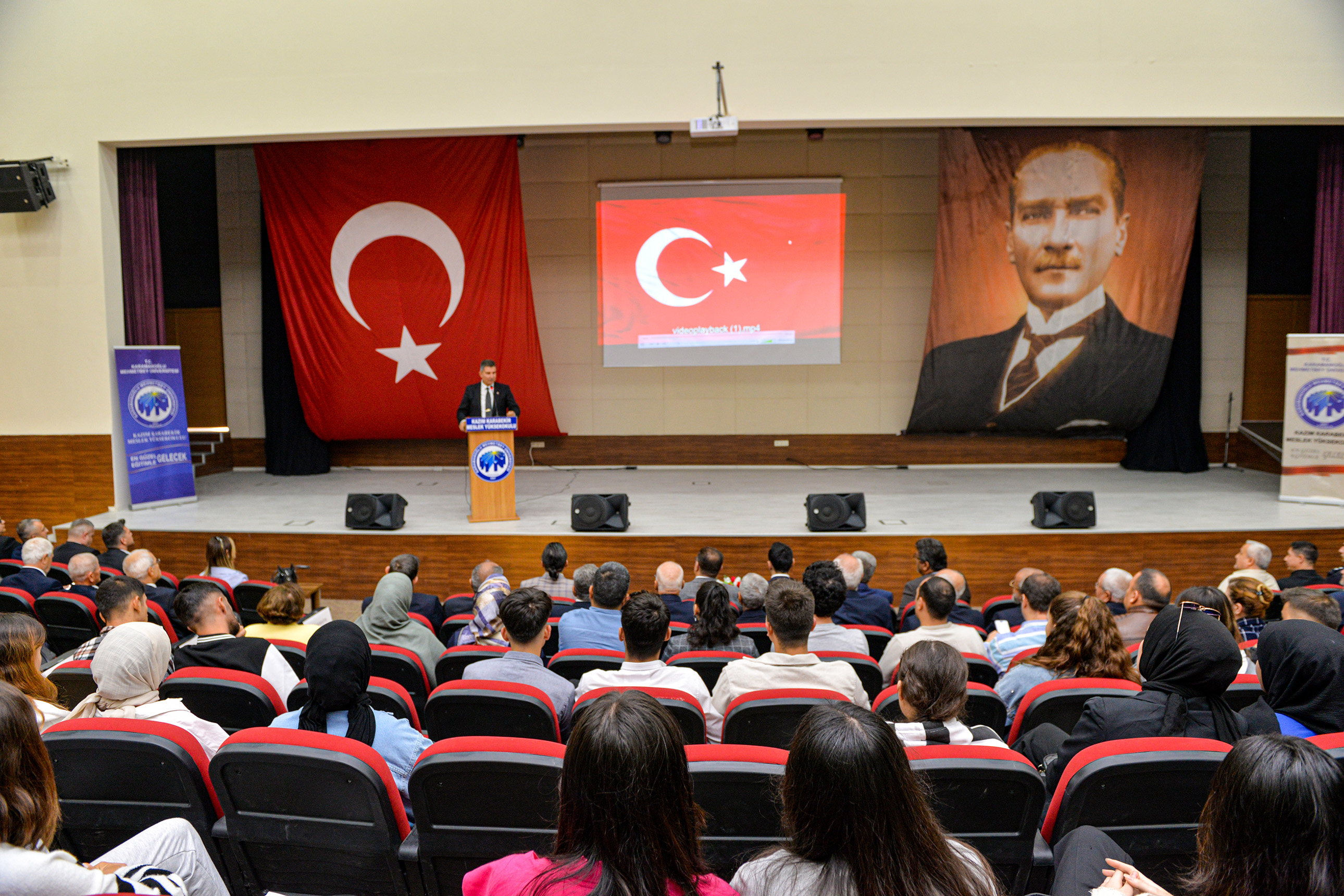 Konferansa Kazımkarabekir Kaymakamı Salih Kaya, Kazımkarabekir Belediye Başkanı Recep Boyacıoğlu, KMÜ Rektör Yardımcısı Prof. Dr. Nevzat Aydın, KKMYO Müdürü Prof. Dr. Mevlüt Bayrakcı, il ve ilçe protokolü, üniversite personeli, öğrenciler ve davetliler katıldı.