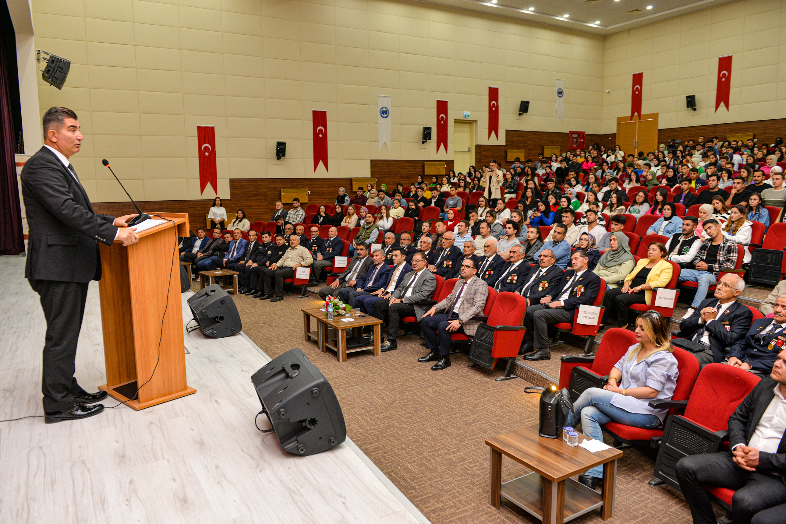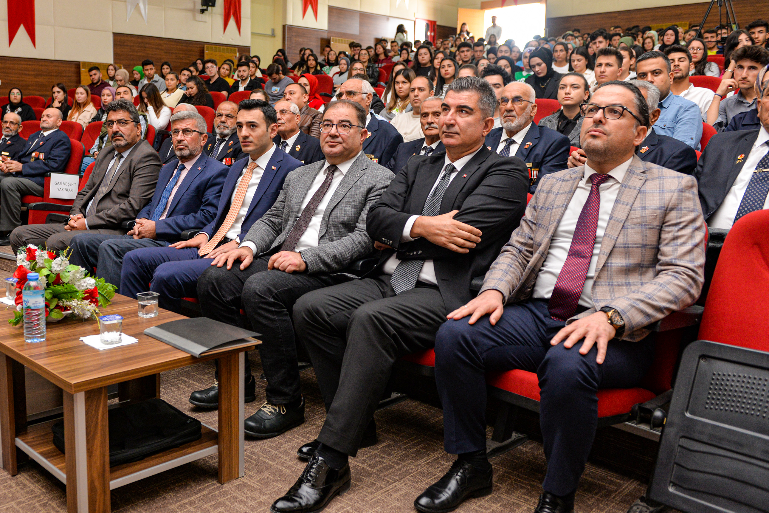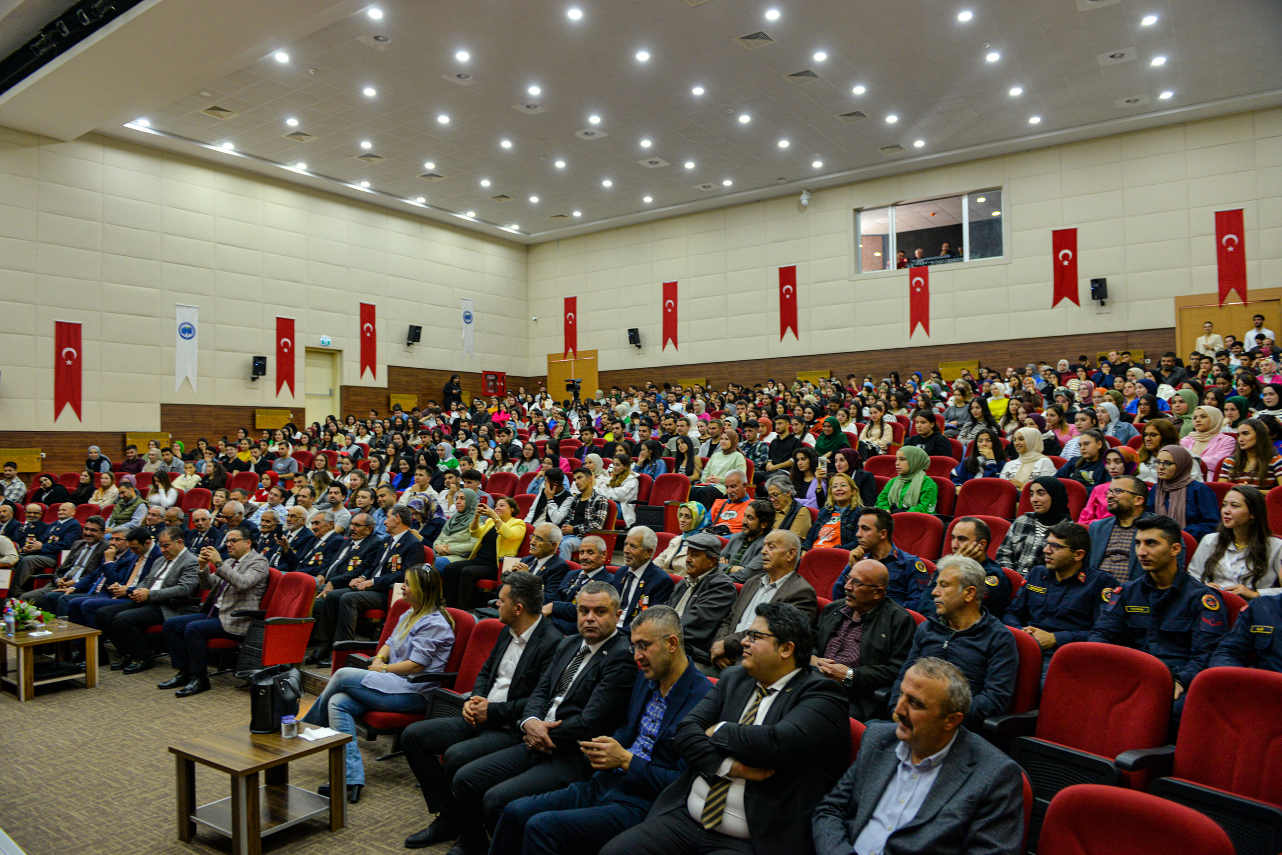 Saygı duruşu ve İstiklal Marşı’nın okunmasının ardından Emekli Kıdemli Albay Erhan Altunok’un konuşmacı olduğu konferansa geçildi. Milli Savunma Bakanlığı bünyesinde yaptığı ‘Türkiye Şehitlerini Anıyor’ programı ile de tanınan Albay Altunok; şehitlik, gazilik ve vatan sevgisi konuları hakkında önemli açıklamalarda bulunarak, yaşanmış hikâyeleri katılımcılarla paylaştı.Öğrencilerin ve halkın yoğun ilgi gösterdiği konferans, hediye takdimi ve ikramların ardından sona erdi.