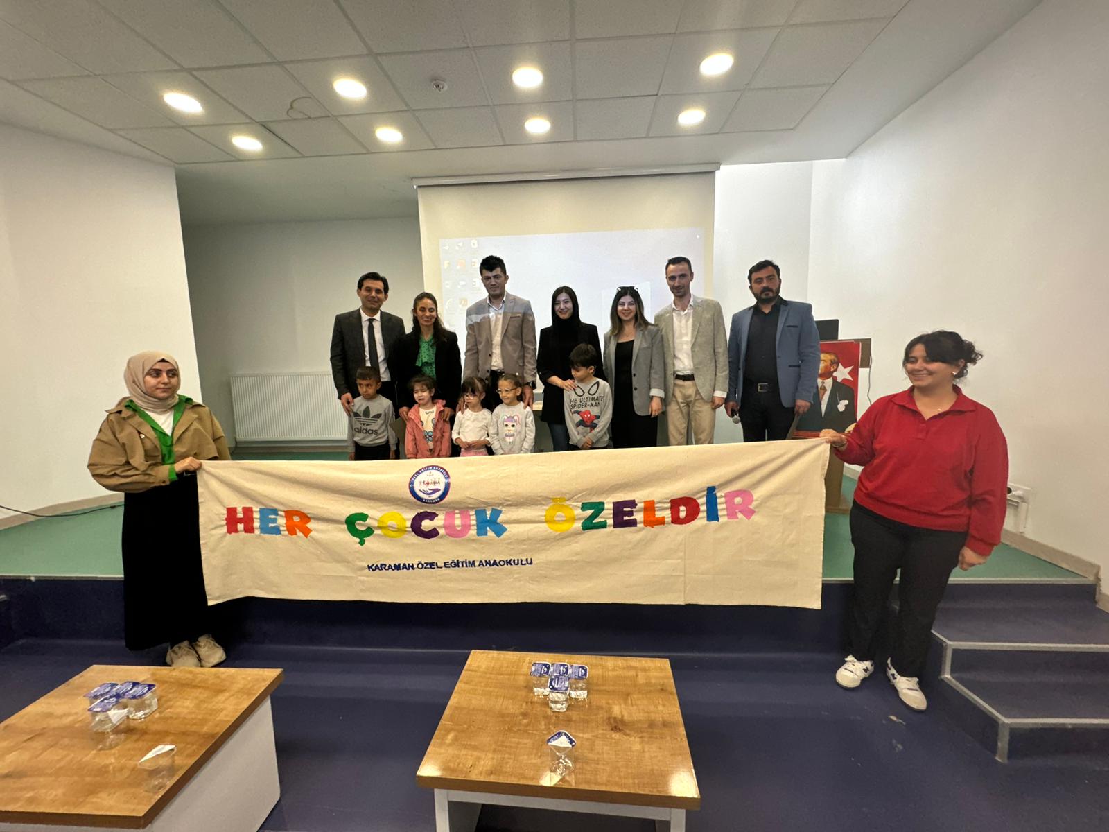 Konuşmacılara Karaman Özel Eğitim Anaokulu Müdürü Bekir Baynal tarafından teşekkür belgelerinin sunulmasının ardından özel eğitim anaokulu öğrencileri tarafından tasarlanan afişin açılmasıyla program son buldu.