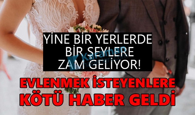 Türkiye yeni yılla birlikte yeni zamlara da merhaba diyor. Yeni yıla yaklaşılırken yine bir şeylere zam geleceği konuşuluyor.Evlenmek isteyen vatandaşlara kötü haber geldi. Evlenmek için kıyılan nikah ücreti neredeyse tam 10 kat artacak.