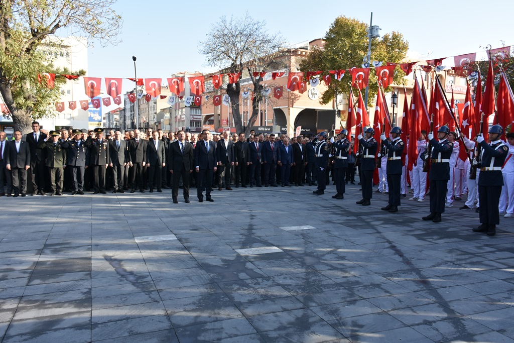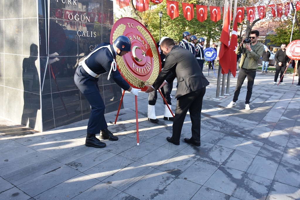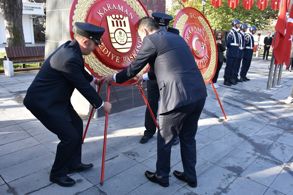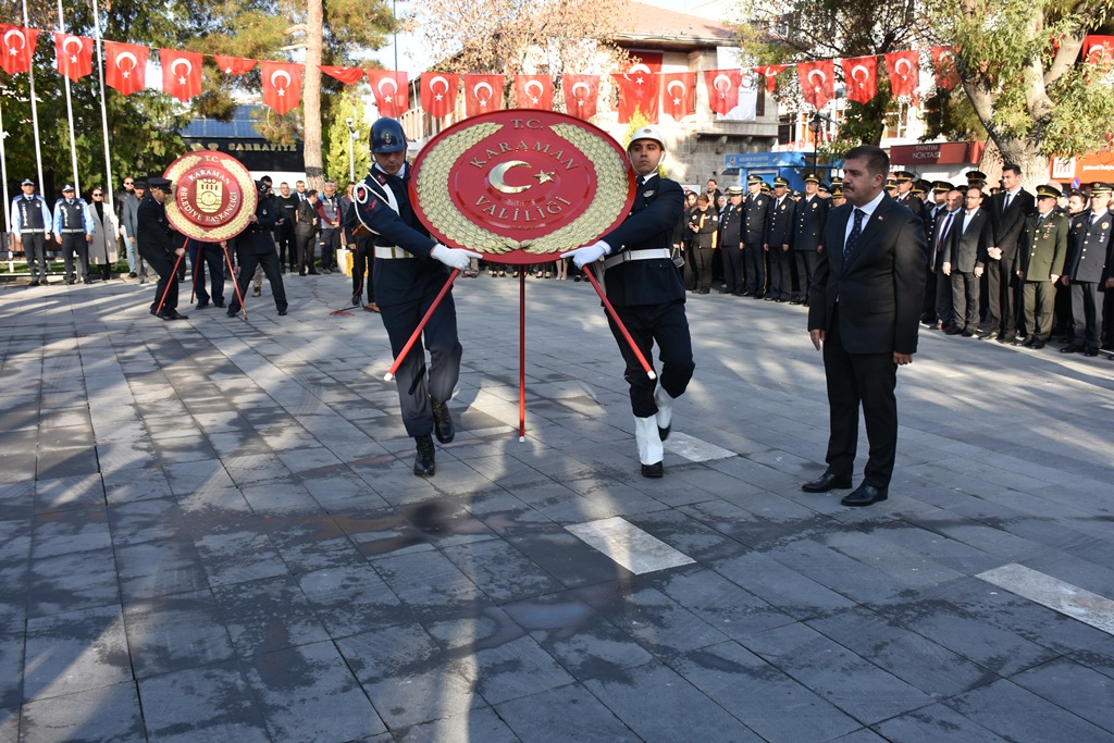 10 Kasım Atatürk'ü Anma etkinlikleri kapsamında ilk tören, Cumhuriyet Parkındaki Atatürk Anıtına; Karaman Valiliği ve Belediye Başkanlığı çelenklerinin sunulmasıyla başladı.