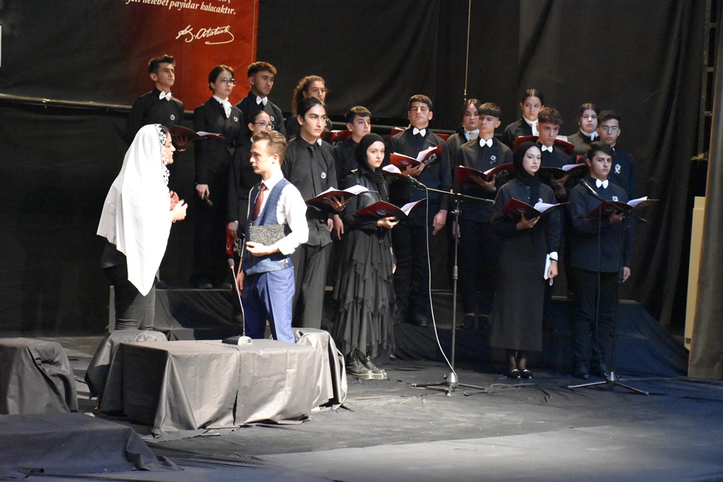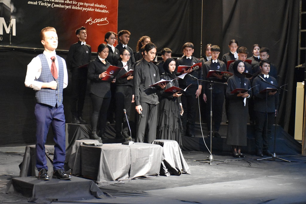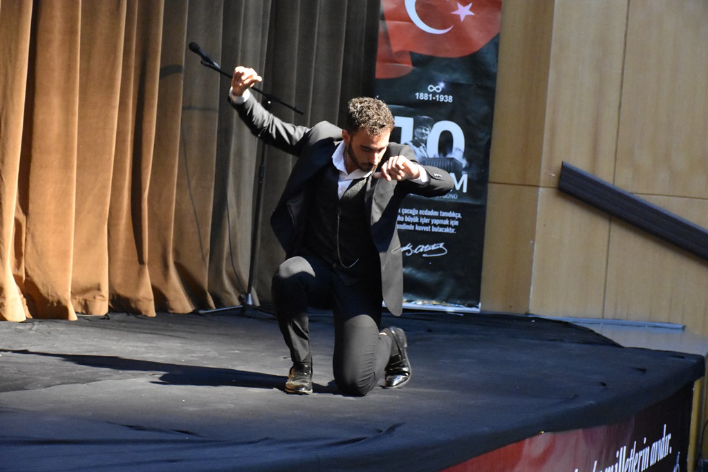 Çelenklerin sunulmasından sonra saat 09:05'te siren sesiyle birlikte Gazi Mustafa Kemal Atatürk, Türk büyükleri ve tüm şehitlerimiz için iki dakikalık saygı duruşunda bulunuldu. İstiklal Marşımızın söylenmesi ile birlikte bayraklar yarıya indi.Çelenk sunma töreni sonrasında anma programı, Piri Reis Kültür Merkezi’nde Fatih Anadolu Lisesi tarafından düzenlenen etkinliklerle devam etti. Saygı duruşu ve İstiklal Marşı'nın akabinde, günün anlam ve önemini belirten konuşmayı Fatih Anadolu Lisesi Müdürü Hasan Erkan yaptı.Konuşma sonrasında öğrencilerin sunduğu oratoryo gösterimi, türkülerin seslendirilmesi ve zeybek gösterimi davetlilerden tam not aldı. Program, il genelinde düzenlenen resim, şiir ve kompozisyon yarışmalarında dereceye giren öğrencilere Karaman Valisi Sayın H. Engin Sarıibrahim, Belediye Başkanı Savaş Kalaycı ile Karamanoğlu Mehmetbey Üniversitesi Rektörü Prof. Dr. Mehmet Gavgalı tarafından hediyelerin verilmesi ve günün anısına çekilen fotoğraflarla sona erdi.