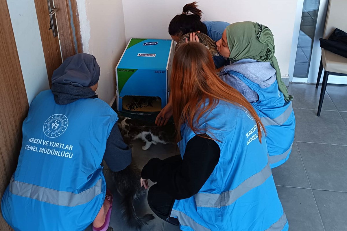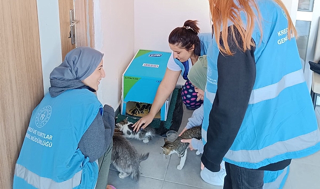Karaman Gençlik ve Spor İl Müdürlüğüne bağlı Mehmet Emin Paşa Yurdu öğrencileri kış öncesi sokak kedileri için kendi evleri yaparak su ve mama kapları bıraktılar.