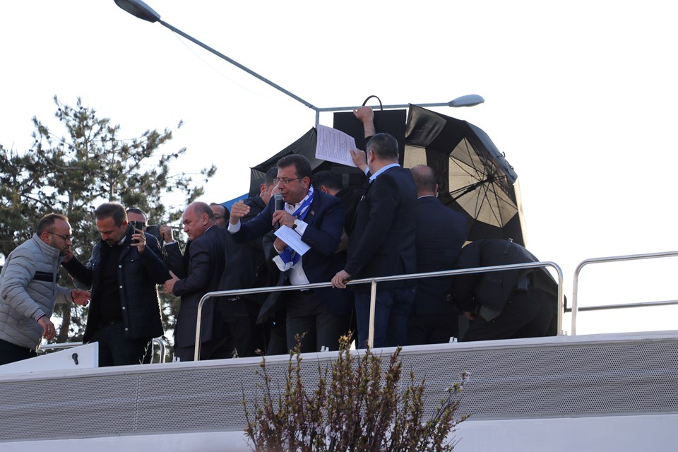 İmamoğlu'na Erzurum mitinginde taşlı saldırı