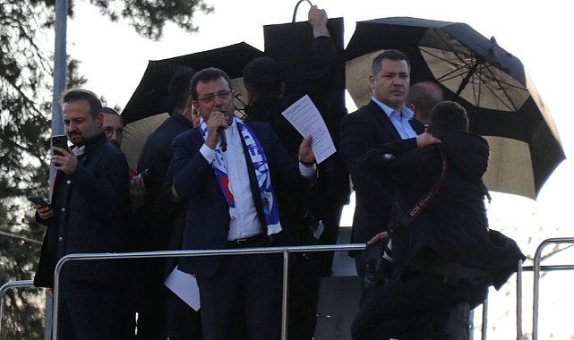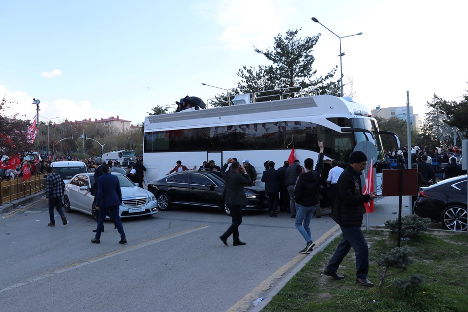 İstanbul Büyükşehir Belediye Başkanı Ekrem İmamoğlu seçim mesaisine Erzurum'da devam etti ancak konuşması sırasında miting alanındaki bir grup seçim otobüsüne taşlı saldırıda bulundu.