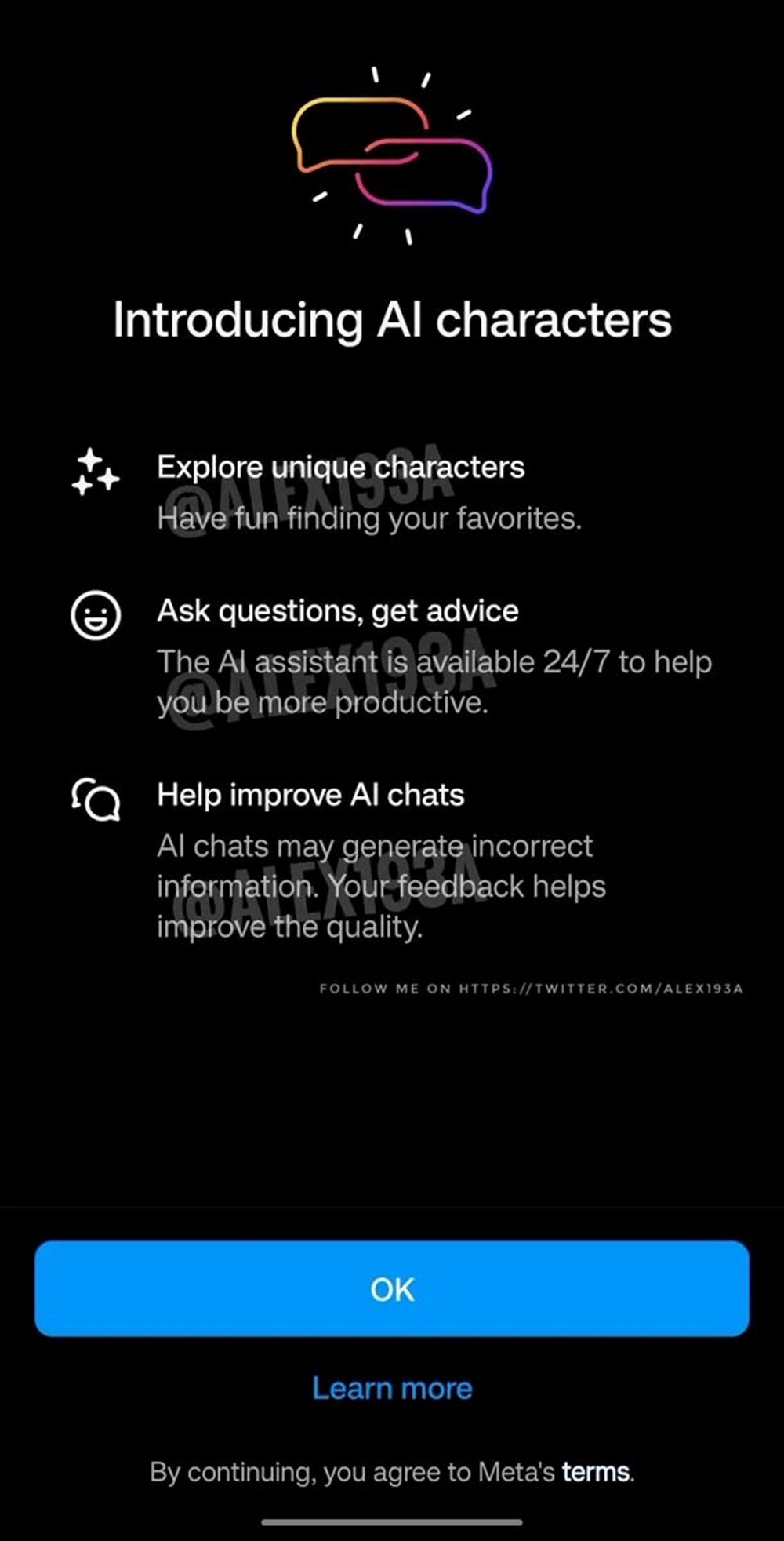 Meta, Instagram üzerinde kullanıcıların sohbetlerine yapay zeka sohbet robotunu eklemek için çalışmalarına devam ediyor. Bu robotun 30 farklı kişiliğe sahip olacağı ve dilediğimiz konular üzerinden sorularımıza yanıt vereceği kaydedildi.