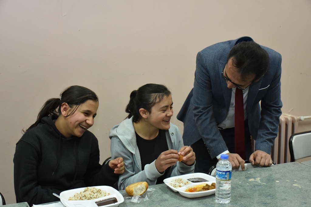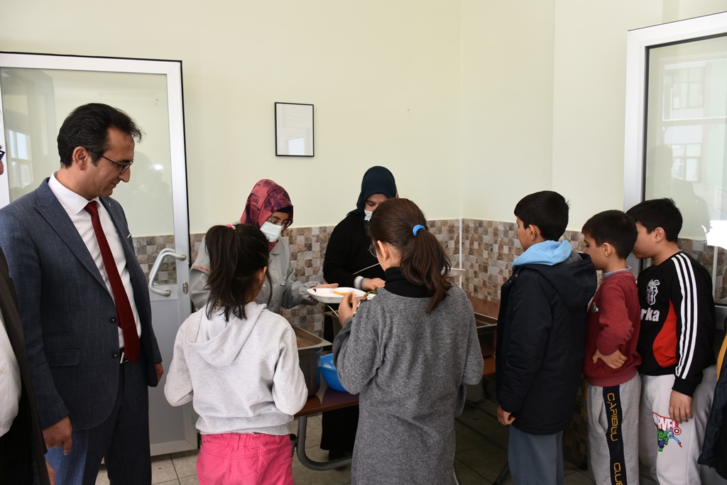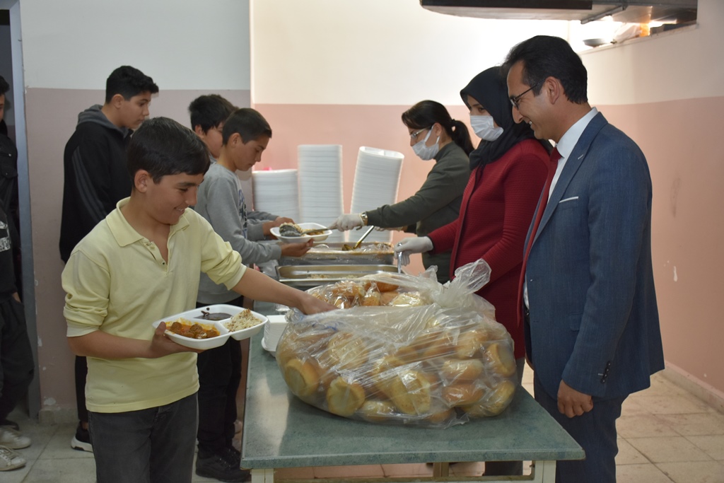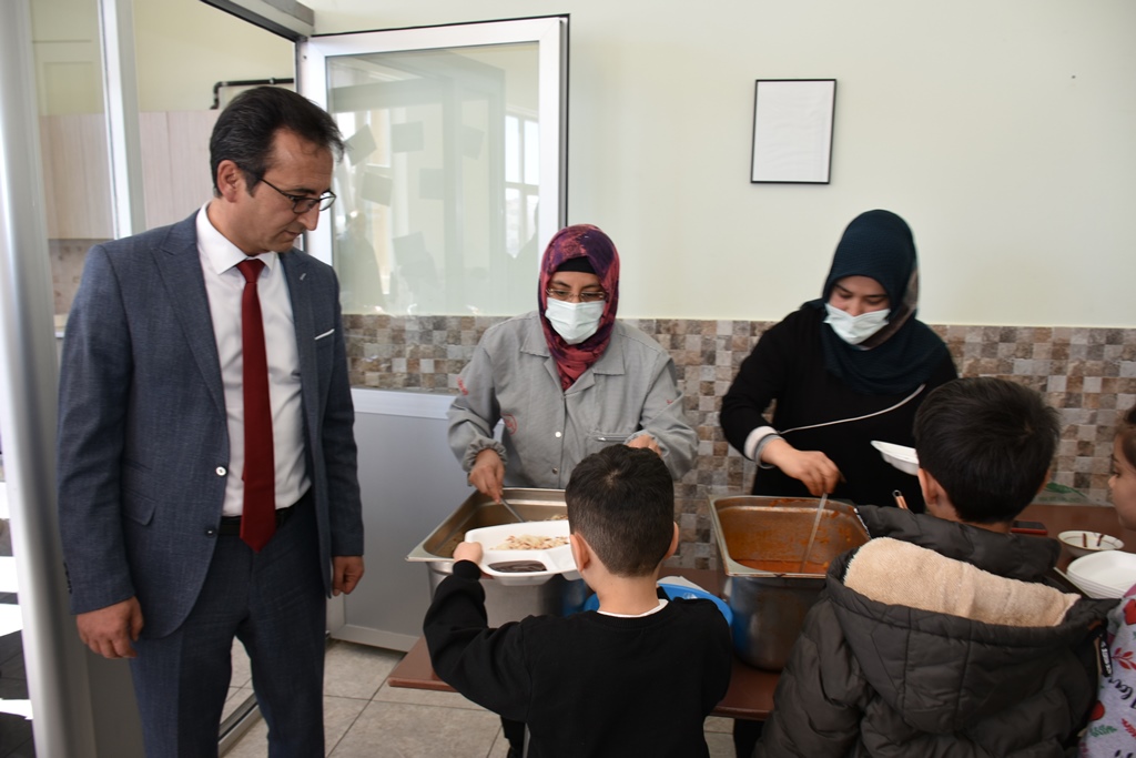İl Millî Eğitim Müdürü Mehmet Çalışkan, Yavuz Sultan Selim Ortaokulu ile Şehit Durmuş Ali Uzun İlkokulu/Ortaokulunu ziyaret ederek ücretsiz yemek uygulaması hakkında yetkililerden bilgi aldı. Kahramanmaraş merkezli depremlerin ardından Karaman’a gelen, Hatuniye, Piri Reis ve Karamanoğlu Mehmetbey KYK Yurtları ile il genelinde kalan 1300 depremzede öğrencinin, yeni arkadaşları ve öğretmenleriyle ders başı yaptığını ve ücretsiz yemek uygulamasından faydalandığını ifade eden İl Müdürü Mehmet Çalışkan, uygulama çerçevesinde okul mutfağında yemek hazırlama imkânı olan anaokulları ile bünyesinde anasınıfı bulunan okul ve kurumların mutfak ihtiyaçları için okullara gerekli desteğin verildiğinin altını çizdi. Çalışkan, “Bakanlığımız tarafından kapsamı genişletilen okul öncesine ücretsiz yemek uygulaması başladı. Okulların açılmasıyla başlayan uygulamada özel olarak hazırlanan menüler öğrencilerle buluştu. Kendi mutfağında yemek hazırlaması mümkün olmayan okullarımızın beslenme hizmetini öğretmenevimiz aracılığıyla sağlıyoruz. Bakanlığımızın sağladığı imkânlarla parasız yatılı, taşıma kapsamındaki öğrencilerimiz ve anaokulu ile anasınıfı öğrencilerinin tamamı, özel eğitim meslek okulu ve özel eğitim uygulama okulu öğrencilerimiz ücretsiz yemek hizmetinden yararlanıyor. Bu dönem itibariyle ilimiz genelinde 13 bin 462 öğrenciye ücretsiz yemek veriliyor. Emeği geçen bütün arkadaşlarıma teşekkür ediyorum” diye konuştu.