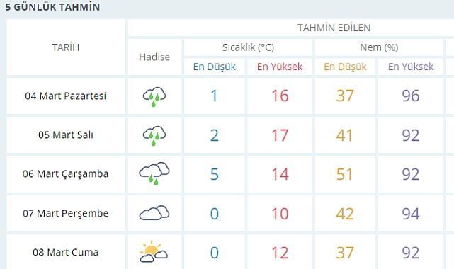 Karaman 5 Günlük Hava Durumu
