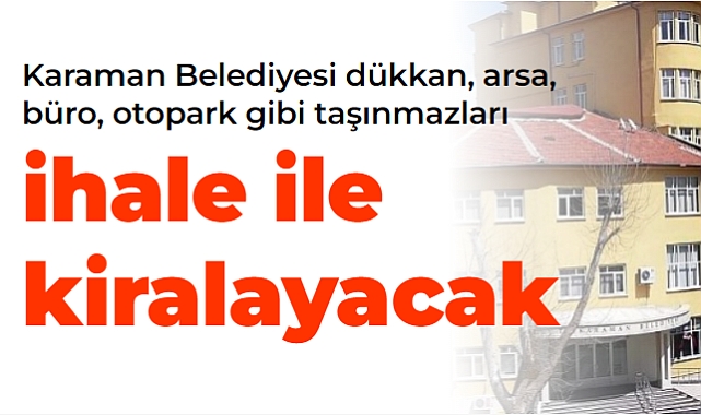 Mülkiyeti Karaman Belediyesi'ne ait olan aşağıdaki taşınmazlar ihale ile kiralanacak: