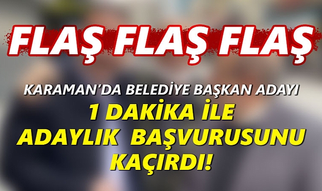 31 Mart Yerel Seçimi için partilerin belirlediği belediye başkan adaylarının Yüksek Seçim Kurulu'na (YSK) resmi başvurularını yapmaları için verilen süre 20 Mart 2024 Pazartesi günü saat 17:00 itibarıyla son buldu.Alınan bilgilere göre Karaman'da siyasi gündemi ve belediye başkanı seçimini derinden etkileyecek bir gelişme yaşandı. adaylığını aylar öncesinden duyuran Büyük Birlik Partisi Karaman Belediye Başkan Adayı Mesut Soyfidan, YSK'ya yapılacak başvuru için son gün olan 20 Şubat 2024 tarihinde (dün) gitti. Soyfidan, başvuru dosyasını saat 17:01'de teslim ettiği için mevzuat gereği başvurusu kabul edilmedi.