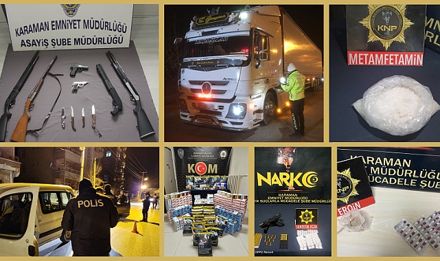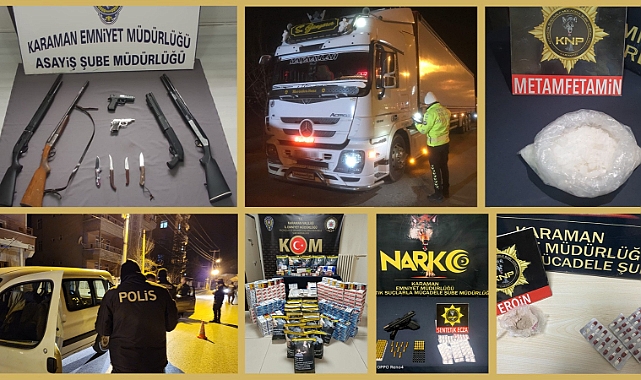 Karaman İl Emniyet Müdürlüğünce asayiş, narkotik ve trafik olayları başta olmak üzere, vatandaşların huzurunu bozacak her türlü suçun engellenmesi, suça karışan şahısların yakalanması amacıyla 09-15 Mart 2024 tarihleri arasında yapılan çalışmalarda;