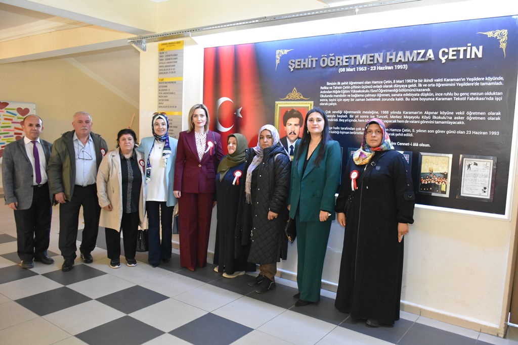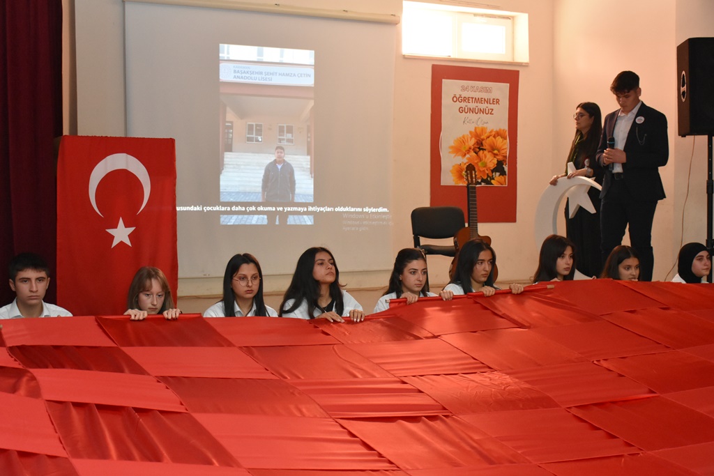 Karaman Valisi Hüseyin Engin Sarıibrahim'in eşi Hanımefendi Hatice Sarıibrahim'in himayelerinde şehit ismi verilen okullarda başlatılan "Şehidimi Tanıyorum, Anısını Yaşatıyorum" Projesi kapsamında Şehit Öğretmen Hamza Çetin’in ailesinin katılımı ile Başakşehir Şehit Hamza Çetin Anadolu Lisesinde 24 Kasım Öğretmenler Günü kutlama programı düzenlendi.Kutlama programına, İl Millî Eğitim Müdürü Mehmet Çalışkan, Hanımefendi Hatice Sarıibrahim, Şehit Öğretmen Hamza Çetin’in ailesi, Millî Eğitim Şube Müdürü Aziz Demir, öğretmenler ve öğrenciler katıldı.Program, saygı duruşu ve İstiklâl Marşı’nın okumasıyla başladı. Günün anlam ve önemini belirten konuşmayı Başakşehir Şehit Hamza Çetin Anadolu Lisesi Tarih Öğretmeni Abdülkadir Şeker yaptı. Öğrenciler tarafından okunan şiirler ve “Ben Öğretmen Olmak İstiyorum” adlı oratoryo ile devam eden programda öğrencilerin sahnelediği zeybek gösterisi izleyicilerden tam not aldı. Şehit Öğretmen Hamza Çetin ve şehit öğretmenler anısına öğretmen ve öğrencilerin birlikte hazırlamış oldukları video gösterimi davetlilere duygu dolu anlar yaşatırken Şehit Öğretmen Hamza Çetin’in aile fertleri ve davetliler gözyaşlarını tutamadı. Program, Hanımefendi Hatice Sarıibrahim'in şehit ailesine hediye takdimi, Şehit Öğretmen Hamza Çetin anısına okul bahçesinde fidan dikimi ve günün anısına çekilen fotoğraflar ile sona erdi.