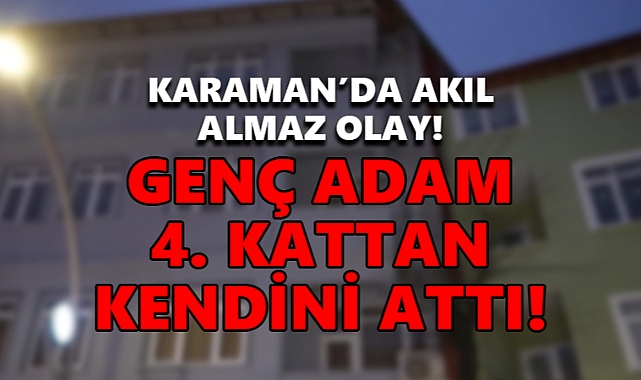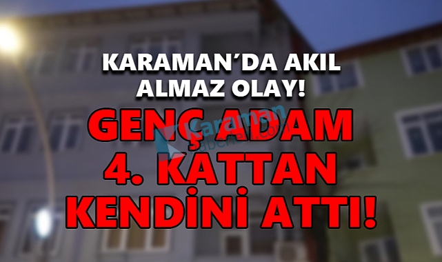 Gazete Anadolu'nun haberine göre Karaman'da bir genç 6 katlı binanın 4. katından kendini aşağıya attı.Olay Tabduk Emre Mahallesi 1591. sokakta meydana geldi. Edinilen bilgilere göre 25 yaşındaki M.Ç. isimli vatandaş sebebi bilinmeyen bir nedenden dolayı 6 katlı binanın 4. katından kendini aşağıya doğru attı.Çevredeki vatandaşların ihbarı üzerine olay yerine sağlık ekipleri ve polis ekipleri sevk edildi.Olay yerine gelen sağlık ekipleri M.Ç.'yi Karaman Eğiitm Araştırma Hastanesine kaldırdı. M.Ç.'nin durumunun ağır olduğu öğrenildi.Polis ekipleri olay ile ilgili soruşturma başattı.KAYNAK: GAZETEANADOLU