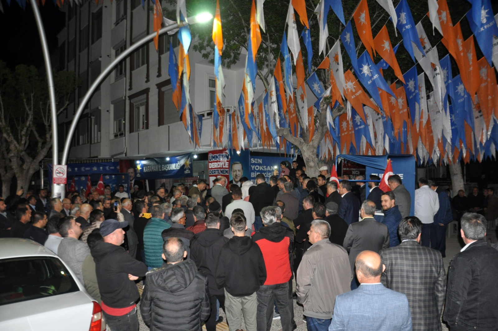 1. İstasyon Caddesi'nde bulunan seçim irtibat bürosu açılışında yoğunluk yaşandı. AK Parti çalışmalarının yürütüleceği seçim irtibat bürosu açılışına, SKM Başkanı Nazmi Ünlü, AK Parti Karaman İl Başkanı Murat Öztürk, AK Parti Milletvekili Selman Oğuzhan Eser, Adaylar Osman Sağlam ve Fatma Coştu ile eski yeni partililer ve çok sayıda vatandaş katıldı.Dualar eşliğinde açılışı yapılan seçim bürosunda açıklama yapan konuşmacılar 14 Mayıs seçimlerinin önemine vurgu yaparak neticenin hayırlı olması temennisinde bulundular.