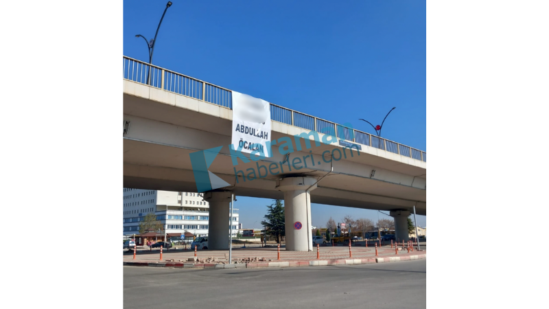 Karaman'da Sanayi Kavşağına "Öcalan" pankartı asıldı.