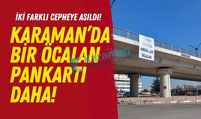 Karaman'da geçtiğimiz günlerde Şeyh Şamil Mahallesine Öcalan pankartı asıldığı da biliniyor.SANAYİ KAVŞAĞINDA DA BENZER GÖRÜNTÜ!Karaman'da Sanayi Kavşağı olarak bilinen İbrahim Öktem Bulvarına iki farklı cepheye Öcalan pankartları asıldı.Karamangüncel isimli sosyal medya hesabının yayınladığı görüntülerde tepkilerin olduğu görüldü.Edinilen bilgilere göre, Sanayi Kavşağına asılan pankartların kaldırıldığı öğrenildi.Pankartları kimin yada kimlerin astığı henüz bilinmiyor...