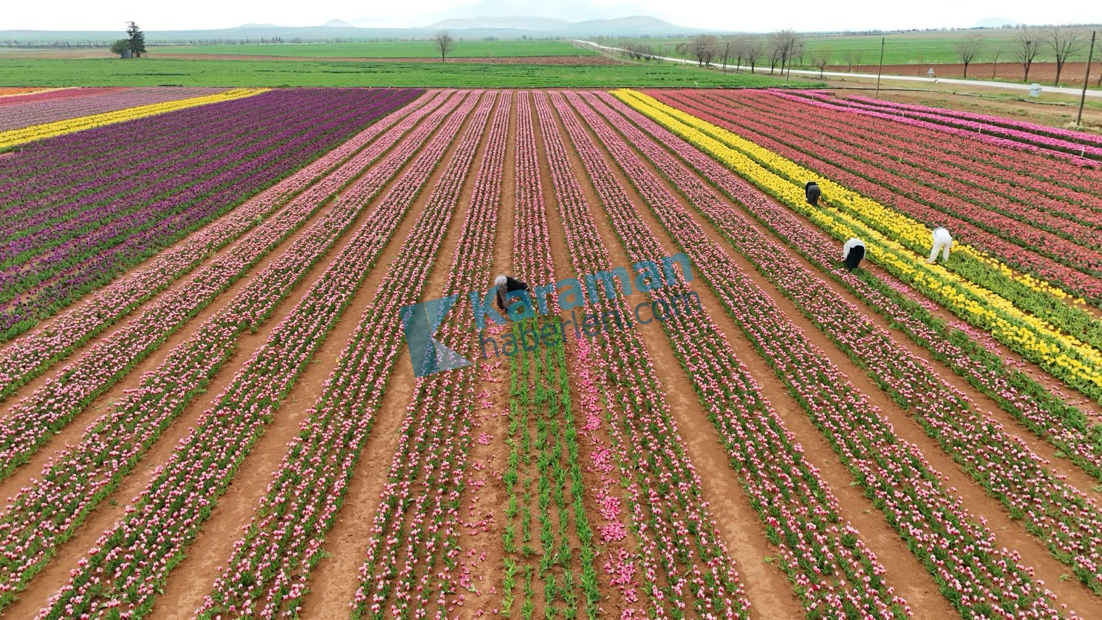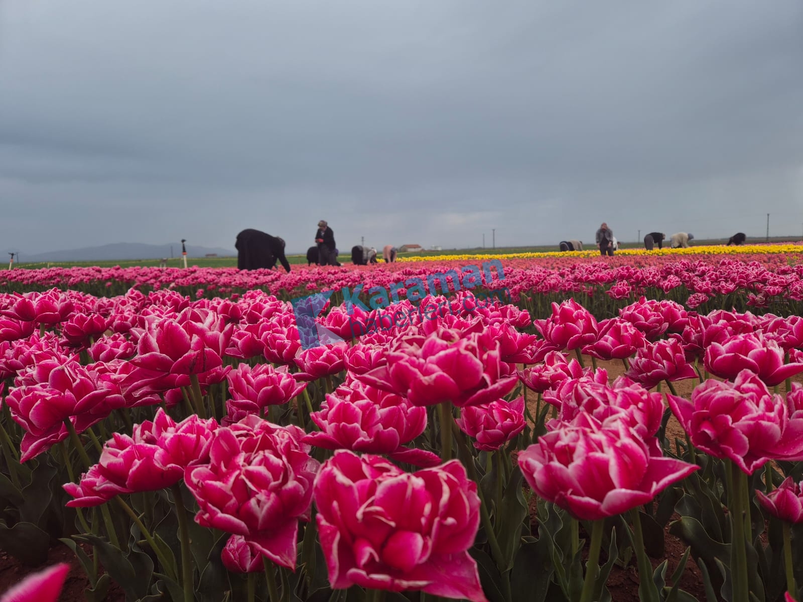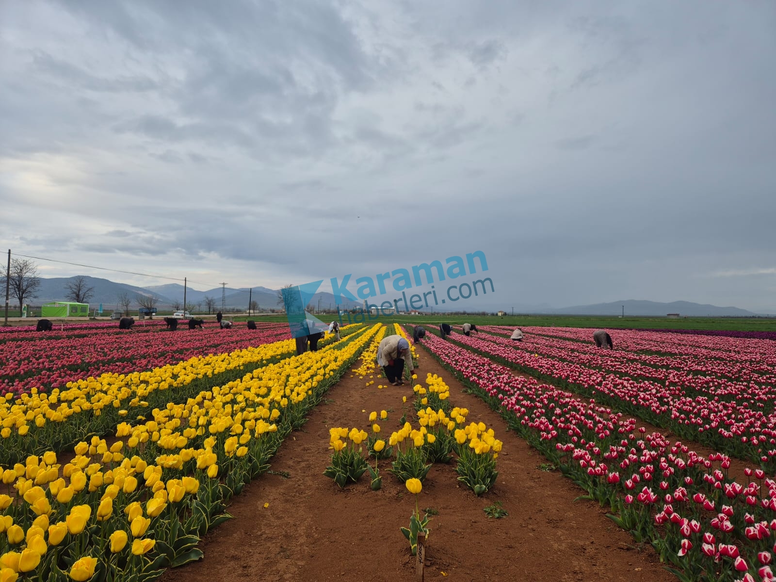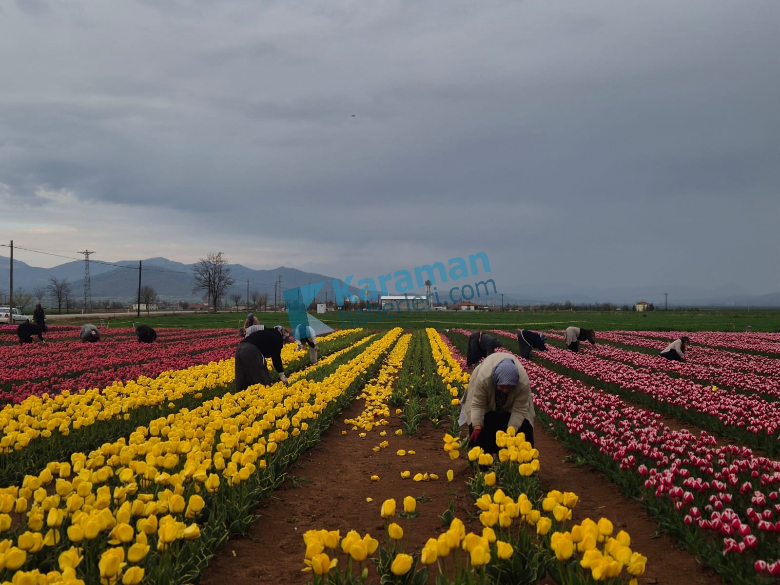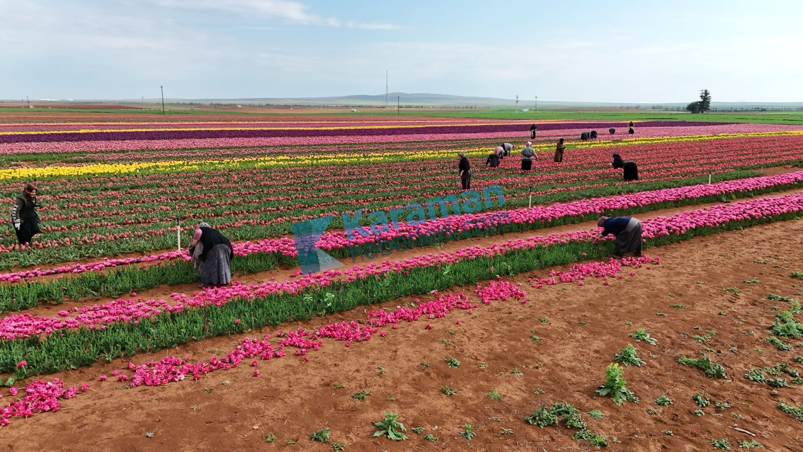 Karaman’ın Kazımkarabekir ilçesine bağlı Kızılkuyu Köyü sınırlarında bulunan Atlas Lale Tarlası, festival sürecinde yaklaşık 400 bin ziyaretçiyi ağırladı. Fotoğraf çekmek isteyen vatandaşların akın ettiği alanda şimdi işçiler görev başında.SABAH 07.00’DE MESAİ BAŞLIYORSabahın erken saatlerinde tarlaya gelen yaklaşık 19-20 kadın işçi, lalelerin kırım işlemine başladı. Çiçeğin baş kısmının alınmasıyla başlayan süreç, ot temizliği, çapa ve bakım çalışmalarıyla devam ediyor.Mesainin sabah 07.00’de başlayıp akşam 17.00’ye kadar sürdüğü öğrenildi.RENKLİ GÜNLERİN ARDINDA GÖRÜNMEYEN EMEKFestival günlerinde ziyaretçilerin gezdiği alan, şimdi üretimin görünmeyen yüzüne sahne oluyor. Kadın işçiler kısa molalarda birlikte kahvaltı yapıyor, evlerinden getirdikleri yiyecekleri paylaşarak dayanışma ortamı oluşturuyor.18 YAŞINDAN 67 YAŞINA KADAR AYNI TARLADATarlada farklı yaş gruplarından kadınlar birlikte çalışıyor. Uzun yıllardır gelen işçiler ev ekonomisine katkı sağlarken, ilk kez çalışanlar da çiçeklerin arasında üretim yapmanın farklı deneyim olduğunu dile getiriyor.Atlas Lale Tarlası, yalnızca turizm noktası değil, aynı zamanda birçok kadın için mevsimlik gelir kapısı olarak öne çıkıyor.HAZİRANDA SÖKÜM BAŞLAYACAKŞu anda devam eden kırım işleminin ardından bakım çalışmaları sürecek. Haziran ayında lale soğanlarının sökümüne geçilecek. Sonrasında temizleme ve ayırma aşaması başlayacak. En son aşamada ise ihracat ve iç piyasaya satışlar başlayacak. Bir hafta boyunca ziyaretçileri ağırlayan Atlas Lale Tarlası, şimdi Karaman’da kadın emeğinin ve üretimin merkezi haline geldi.