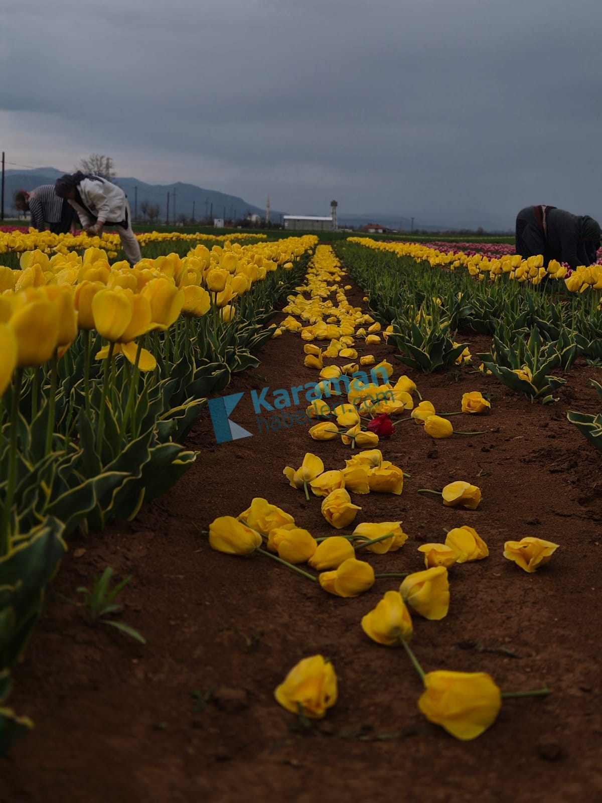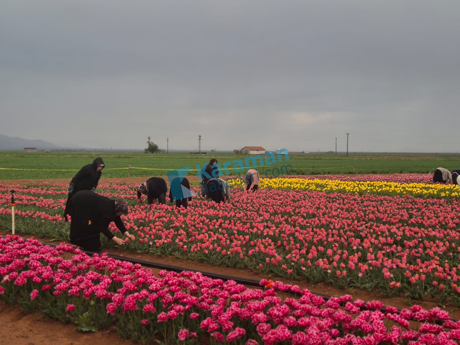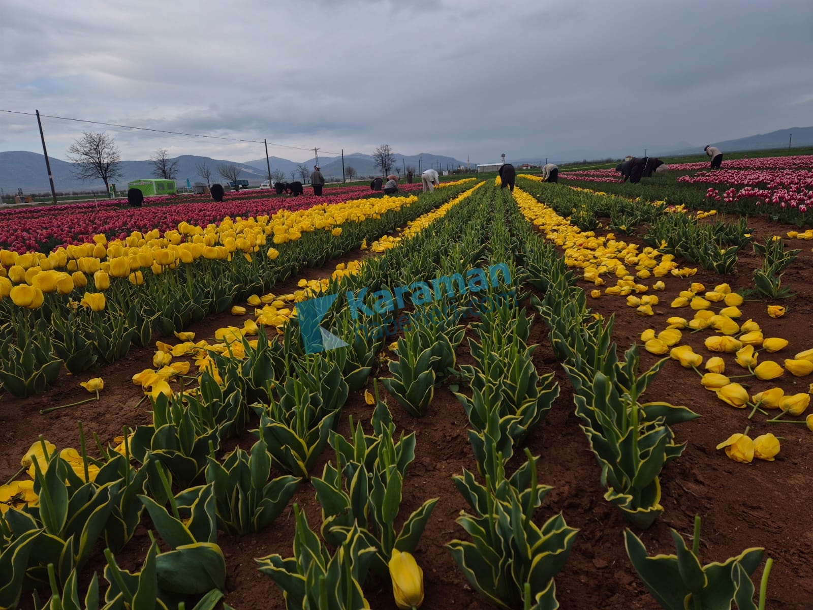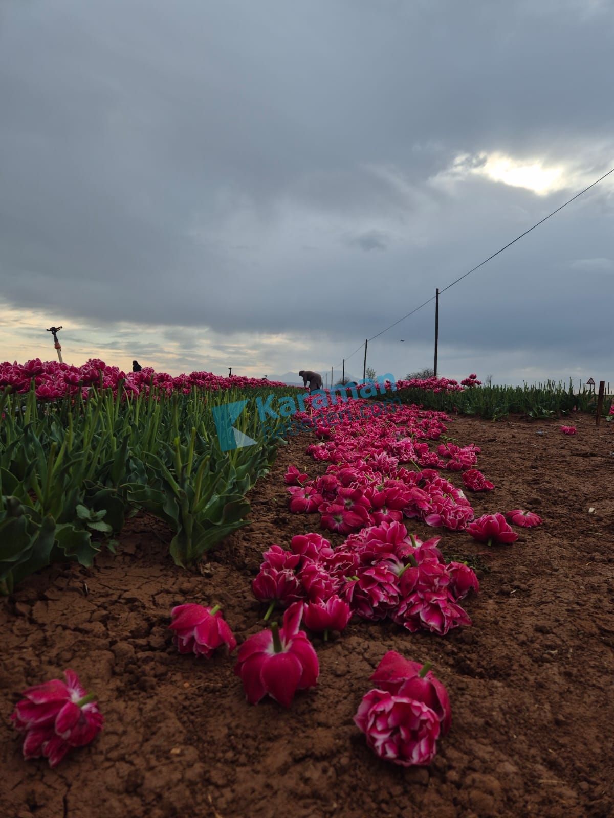Karaman’ın Kazımkarabekir ilçesine bağlı Kızılkuyu Köyü sınırlarında bulunan Atlas Lale Tarlası, festival sürecinde yaklaşık 400 bin ziyaretçiyi ağırladı. Fotoğraf çekmek isteyen vatandaşların akın ettiği alanda şimdi işçiler görev başında.SABAH 07.00’DE MESAİ BAŞLIYORSabahın erken saatlerinde tarlaya gelen yaklaşık 19-20 kadın işçi, lalelerin kırım işlemine başladı. Çiçeğin baş kısmının alınmasıyla başlayan süreç, ot temizliği, çapa ve bakım çalışmalarıyla devam ediyor.Mesainin sabah 07.00’de başlayıp akşam 17.00’ye kadar sürdüğü öğrenildi.RENKLİ GÜNLERİN ARDINDA GÖRÜNMEYEN EMEKFestival günlerinde ziyaretçilerin gezdiği alan, şimdi üretimin görünmeyen yüzüne sahne oluyor. Kadın işçiler kısa molalarda birlikte kahvaltı yapıyor, evlerinden getirdikleri yiyecekleri paylaşarak dayanışma ortamı oluşturuyor.18 YAŞINDAN 67 YAŞINA KADAR AYNI TARLADATarlada farklı yaş gruplarından kadınlar birlikte çalışıyor. Uzun yıllardır gelen işçiler ev ekonomisine katkı sağlarken, ilk kez çalışanlar da çiçeklerin arasında üretim yapmanın farklı deneyim olduğunu dile getiriyor.Atlas Lale Tarlası, yalnızca turizm noktası değil, aynı zamanda birçok kadın için mevsimlik gelir kapısı olarak öne çıkıyor.HAZİRANDA SÖKÜM BAŞLAYACAKŞu anda devam eden kırım işleminin ardından bakım çalışmaları sürecek. Haziran ayında lale soğanlarının sökümüne geçilecek. Sonrasında temizleme ve ayırma aşaması başlayacak. En son aşamada ise ihracat ve iç piyasaya satışlar başlayacak. Bir hafta boyunca ziyaretçileri ağırlayan Atlas Lale Tarlası, şimdi Karaman’da kadın emeğinin ve üretimin merkezi haline geldi.