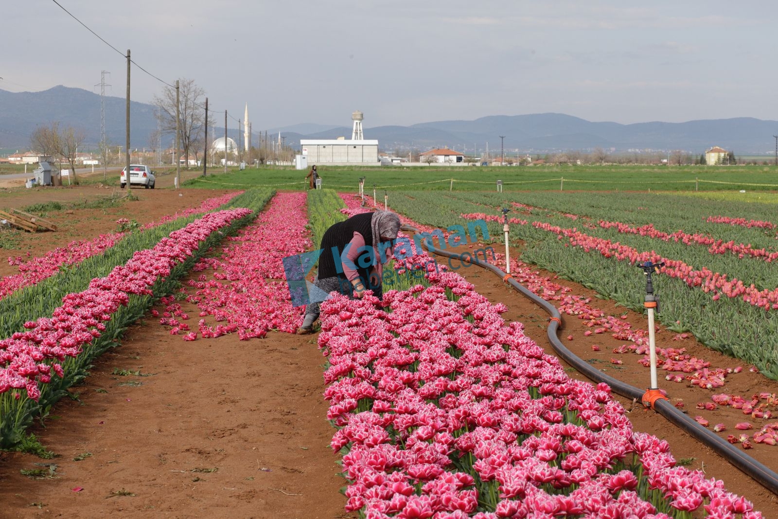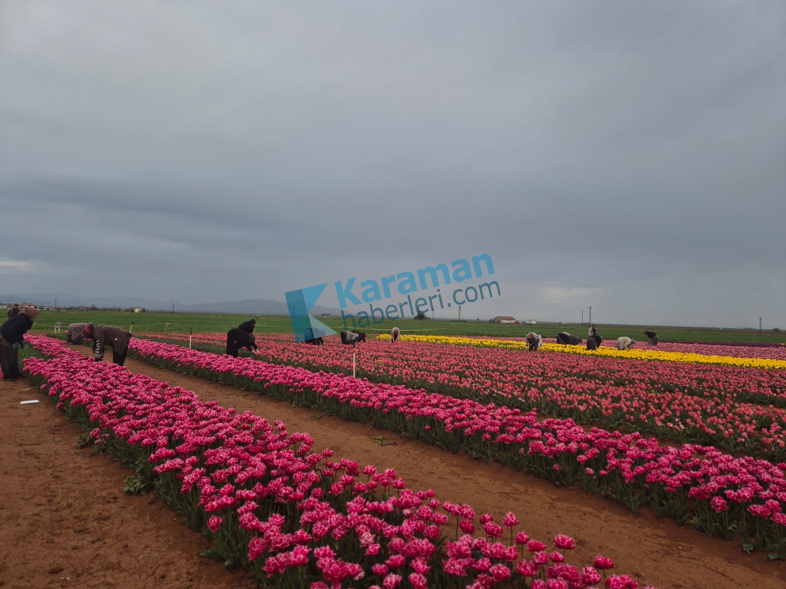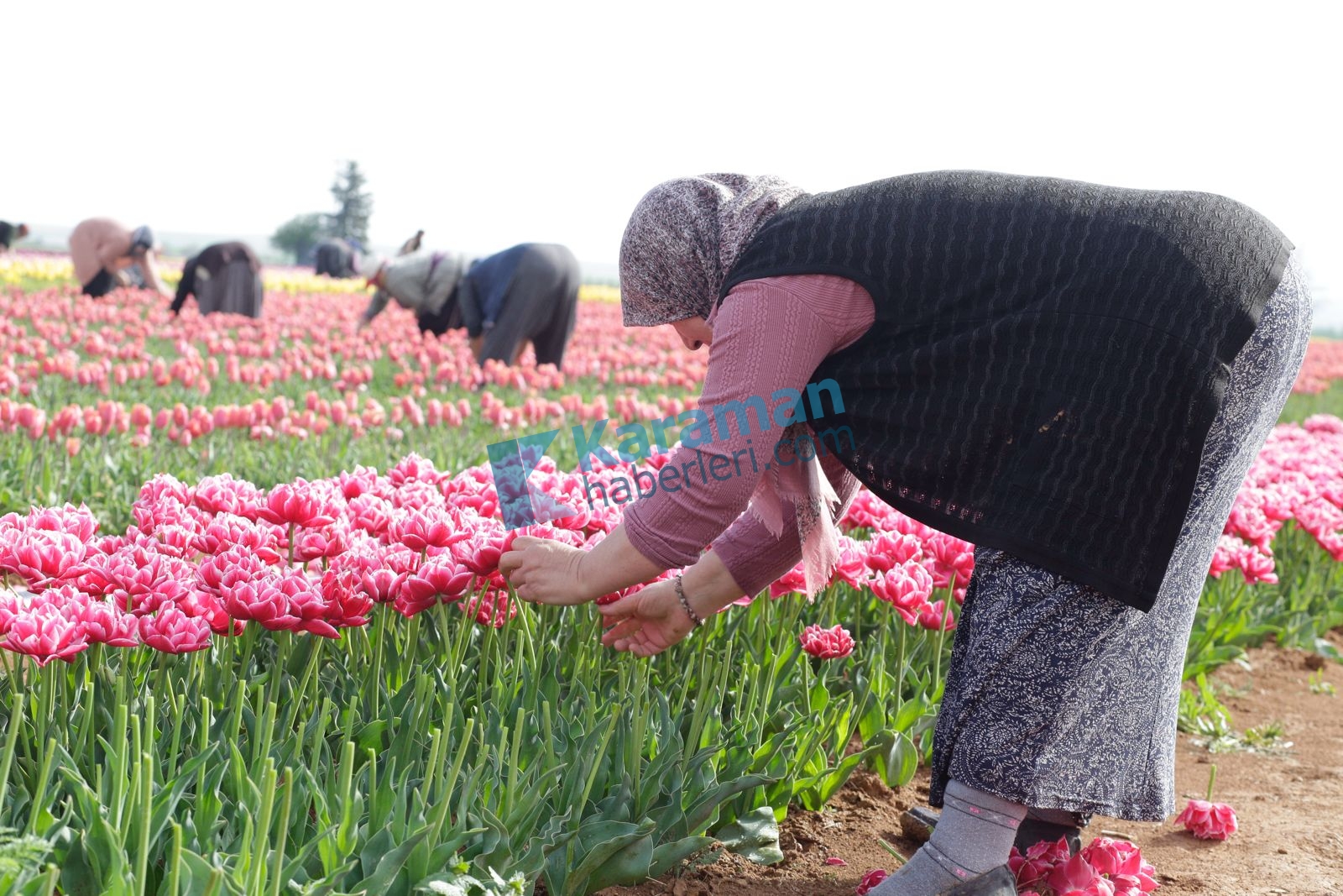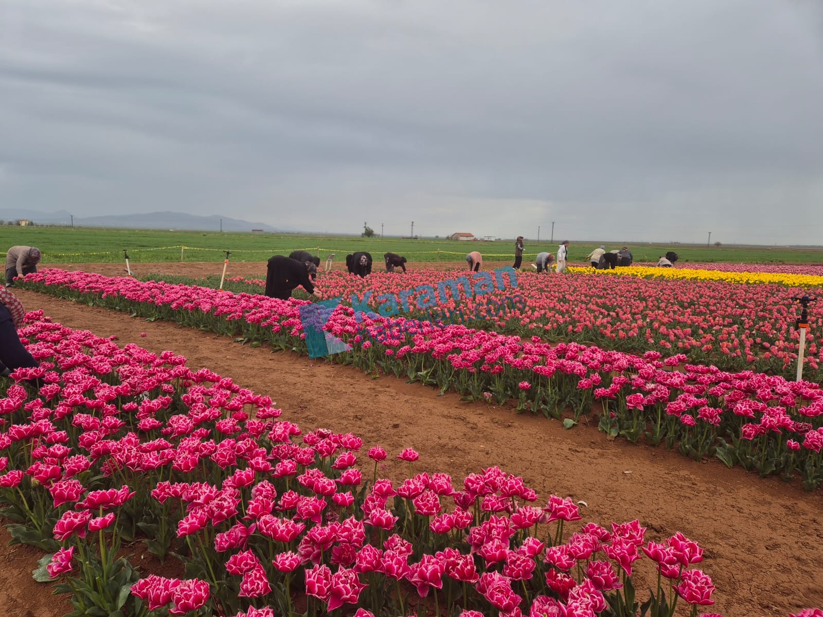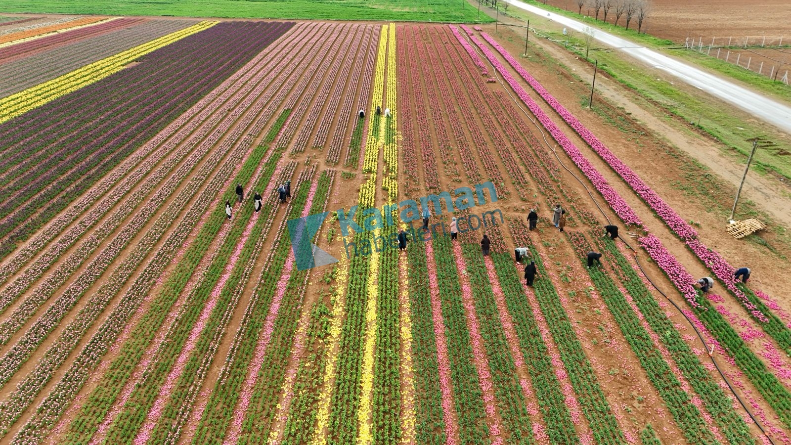 Karaman’ın Kazımkarabekir ilçesine bağlı Kızılkuyu Köyü sınırlarında bulunan Atlas Lale Tarlası, festival sürecinde yaklaşık 400 bin ziyaretçiyi ağırladı. Fotoğraf çekmek isteyen vatandaşların akın ettiği alanda şimdi işçiler görev başında.SABAH 07.00’DE MESAİ BAŞLIYORSabahın erken saatlerinde tarlaya gelen yaklaşık 19-20 kadın işçi, lalelerin kırım işlemine başladı. Çiçeğin baş kısmının alınmasıyla başlayan süreç, ot temizliği, çapa ve bakım çalışmalarıyla devam ediyor.Mesainin sabah 07.00’de başlayıp akşam 17.00’ye kadar sürdüğü öğrenildi.RENKLİ GÜNLERİN ARDINDA GÖRÜNMEYEN EMEKFestival günlerinde ziyaretçilerin gezdiği alan, şimdi üretimin görünmeyen yüzüne sahne oluyor. Kadın işçiler kısa molalarda birlikte kahvaltı yapıyor, evlerinden getirdikleri yiyecekleri paylaşarak dayanışma ortamı oluşturuyor.18 YAŞINDAN 67 YAŞINA KADAR AYNI TARLADATarlada farklı yaş gruplarından kadınlar birlikte çalışıyor. Uzun yıllardır gelen işçiler ev ekonomisine katkı sağlarken, ilk kez çalışanlar da çiçeklerin arasında üretim yapmanın farklı deneyim olduğunu dile getiriyor.Atlas Lale Tarlası, yalnızca turizm noktası değil, aynı zamanda birçok kadın için mevsimlik gelir kapısı olarak öne çıkıyor.HAZİRANDA SÖKÜM BAŞLAYACAKŞu anda devam eden kırım işleminin ardından bakım çalışmaları sürecek. Haziran ayında lale soğanlarının sökümüne geçilecek. Sonrasında temizleme ve ayırma aşaması başlayacak. En son aşamada ise ihracat ve iç piyasaya satışlar başlayacak. Bir hafta boyunca ziyaretçileri ağırlayan Atlas Lale Tarlası, şimdi Karaman’da kadın emeğinin ve üretimin merkezi haline geldi.