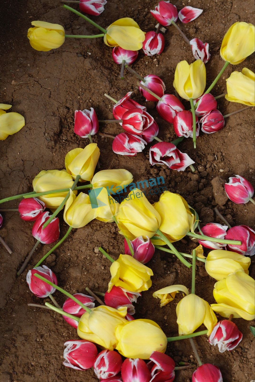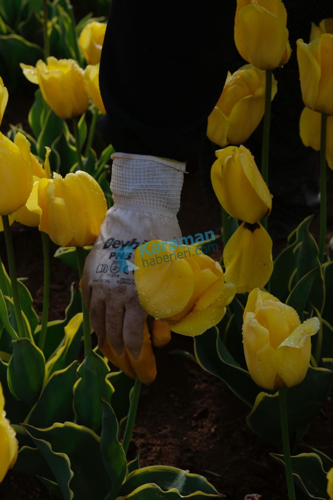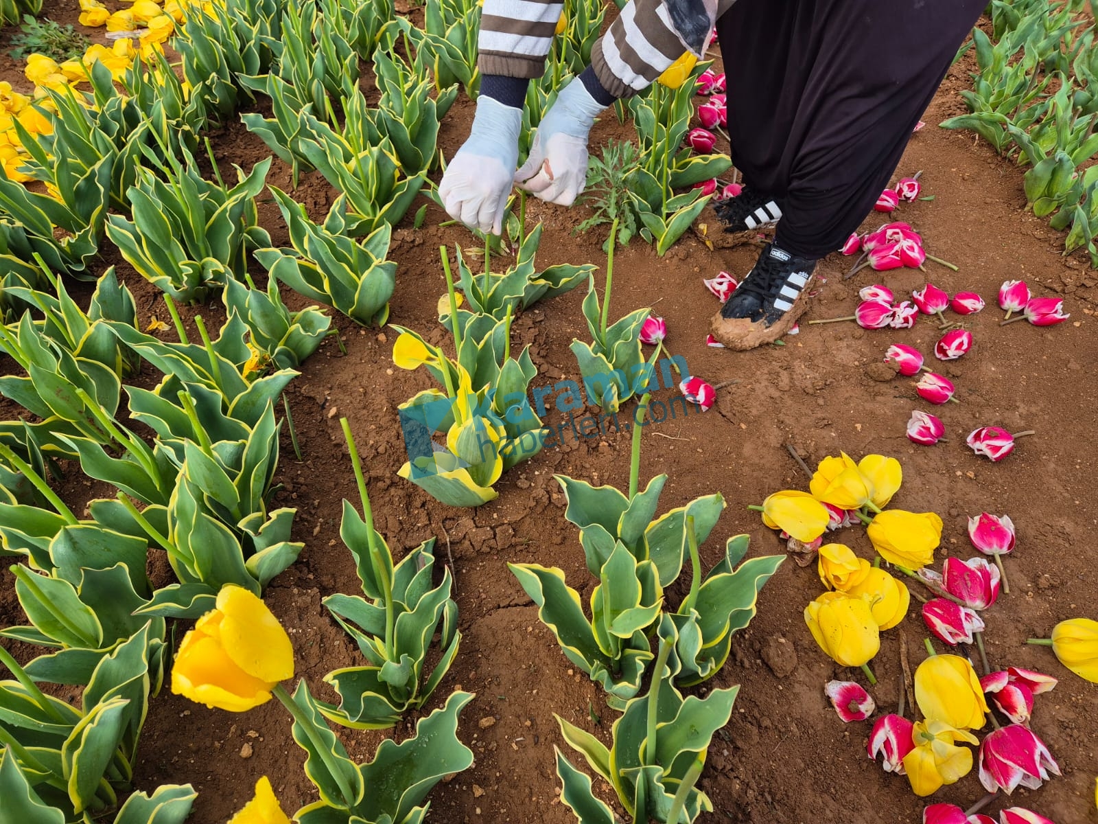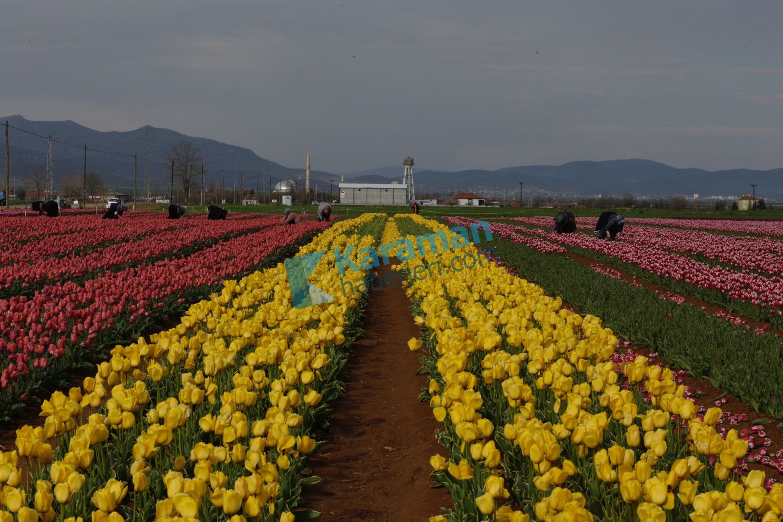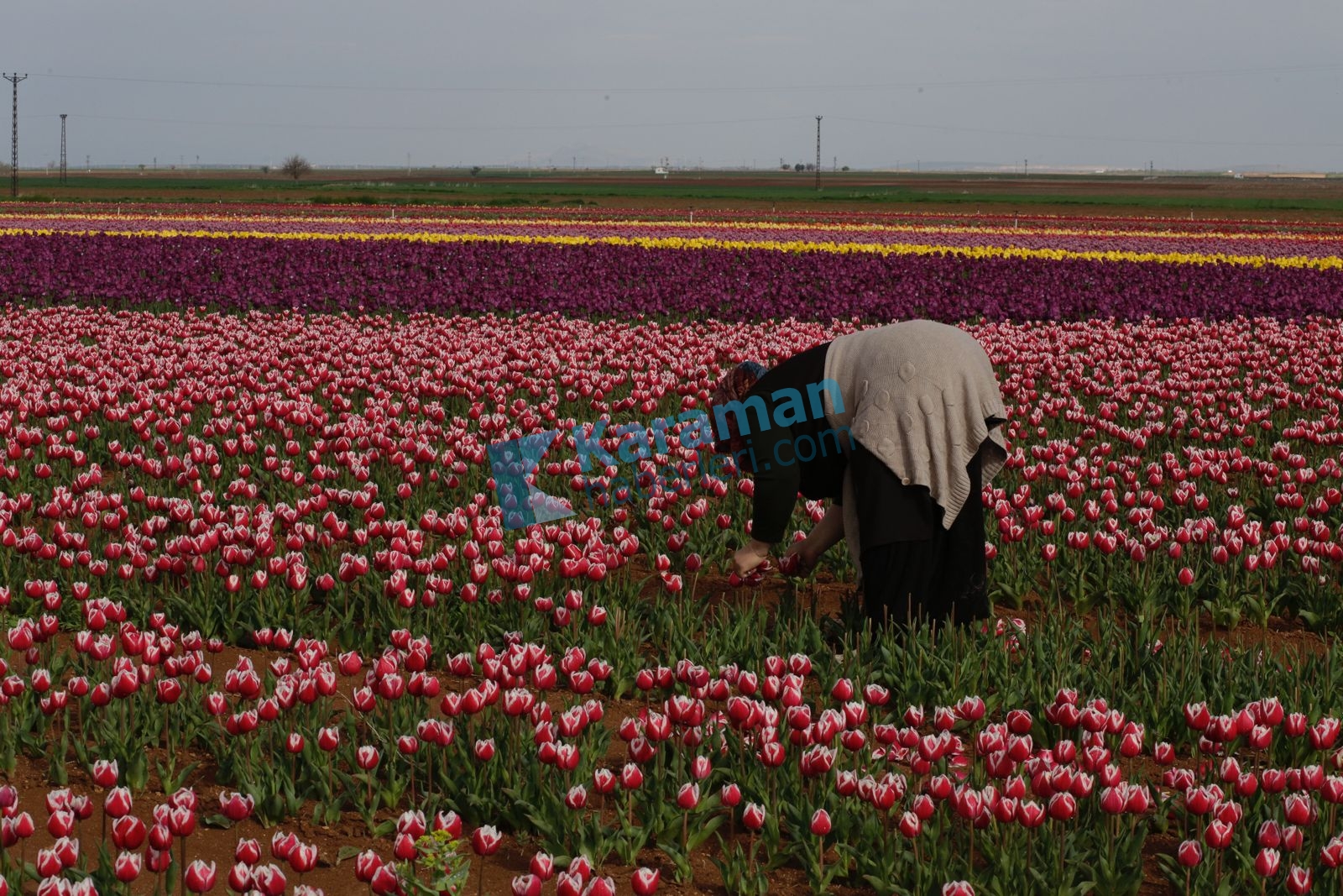Karaman’ın Kazımkarabekir ilçesine bağlı Kızılkuyu Köyü sınırlarında bulunan Atlas Lale Tarlası, festival sürecinde yaklaşık 400 bin ziyaretçiyi ağırladı. Fotoğraf çekmek isteyen vatandaşların akın ettiği alanda şimdi işçiler görev başında.SABAH 07.00’DE MESAİ BAŞLIYORSabahın erken saatlerinde tarlaya gelen yaklaşık 19-20 kadın işçi, lalelerin kırım işlemine başladı. Çiçeğin baş kısmının alınmasıyla başlayan süreç, ot temizliği, çapa ve bakım çalışmalarıyla devam ediyor.Mesainin sabah 07.00’de başlayıp akşam 17.00’ye kadar sürdüğü öğrenildi.RENKLİ GÜNLERİN ARDINDA GÖRÜNMEYEN EMEKFestival günlerinde ziyaretçilerin gezdiği alan, şimdi üretimin görünmeyen yüzüne sahne oluyor. Kadın işçiler kısa molalarda birlikte kahvaltı yapıyor, evlerinden getirdikleri yiyecekleri paylaşarak dayanışma ortamı oluşturuyor.18 YAŞINDAN 67 YAŞINA KADAR AYNI TARLADATarlada farklı yaş gruplarından kadınlar birlikte çalışıyor. Uzun yıllardır gelen işçiler ev ekonomisine katkı sağlarken, ilk kez çalışanlar da çiçeklerin arasında üretim yapmanın farklı deneyim olduğunu dile getiriyor.Atlas Lale Tarlası, yalnızca turizm noktası değil, aynı zamanda birçok kadın için mevsimlik gelir kapısı olarak öne çıkıyor.HAZİRANDA SÖKÜM BAŞLAYACAKŞu anda devam eden kırım işleminin ardından bakım çalışmaları sürecek. Haziran ayında lale soğanlarının sökümüne geçilecek. Sonrasında temizleme ve ayırma aşaması başlayacak. En son aşamada ise ihracat ve iç piyasaya satışlar başlayacak. Bir hafta boyunca ziyaretçileri ağırlayan Atlas Lale Tarlası, şimdi Karaman’da kadın emeğinin ve üretimin merkezi haline geldi.