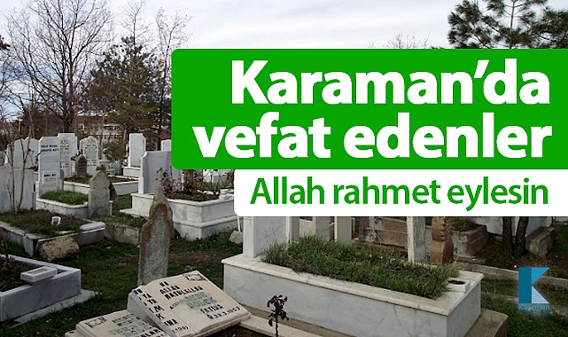 Aslen MORCALI KÖYÜNDEN olup İBRAHİM HAKKI KONYALI MAHALLESİNDE ikamet etmekte olan MUAMMER ŞEN (60) vefat etmiştir. Cenazesi 1 Eylül Pazartesi GÜNÜ ÖĞLE namazına müteakip MUSALLADAN kaldırılacaktır.Merhumun cenazesi,Karaman Şehir Mezarlığı 20 Nolu Ada'ya defnedilecektir.Aslen TAŞKALE KÖYÜNDEN olup PİRİREİS MAHALLESİNDE ikamet etmekte olan MAKBULE KORAŞ (84) vefat etmiştir. Cenazesi 1 Eylül Pazartesi GÜNÜ ÖĞLE namazına müteakip MUSALLADAN kaldırılacaktır.Merhumun cenazesi,Karaman Şehir Mezarlığı 1 Nolu Ada'ya defnedilecektir.Aslen TAŞKALE KÖYÜNDEN olup AHMET METE HUZUR EVİ ikamet etmekte olan GALİP KÜÇÜKSÜMBÜL (97) vefat etmiştir. Cenazesi 1 Eylül Pazartesi GÜNÜ ÖĞLE namazına müteakip MUSALLADAN kaldırılacaktır.Merhumun cenazesi,Karaman Şehir Mezarlığı 34 Nolu Ada'ya defnedilecektir.Aslen ÖZDEMİR KÖYÜNDEN olup GAZİDÜKKAN MAHALLESİNDE ikamet etmekte olan FATMA YILDIZ (69) vefat etmiştir. Cenazesi 1 Eylül Pazartesi GÜNÜ ÖĞLE namazına müteakip MUSALLADAN kaldırılacaktır.Merhumun cenazesi,Karaman Şehir Mezarlığı 30 Nolu Ada'ya defnedilecektir.Karamanhaberleri.com ailesi olarak merhuma Allah’tan rahmet; ailesine, yakınlarına ve sevenlerine sabırlar dileriz.